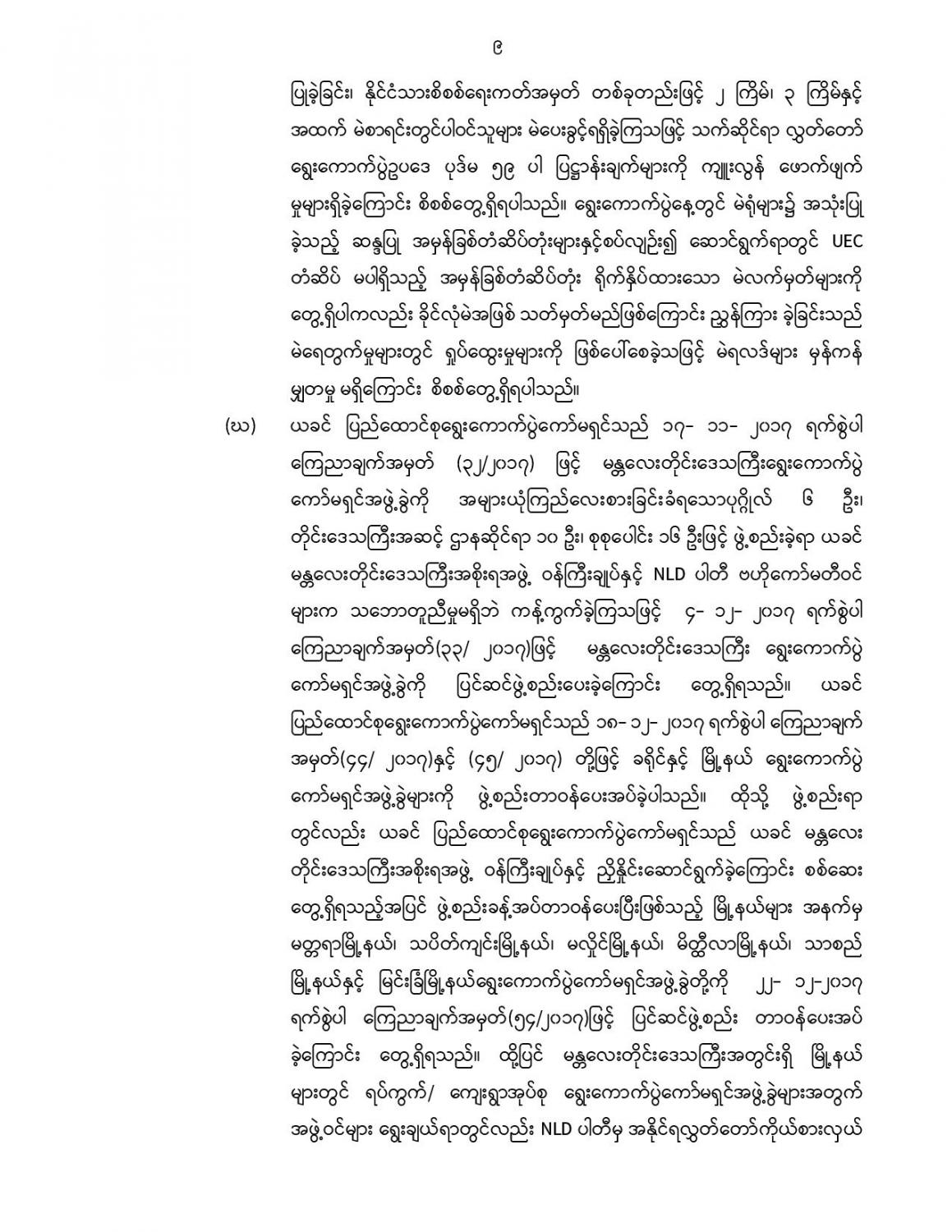 ပြည်ထောင်စုရွေးကောက်ပွဲကော်မရှင်၏သတင်းထုတ်ပြန်ချက် ၂၀၂၁ ခုနှစ်၊ ဇွန် လ ၁ ရက်
