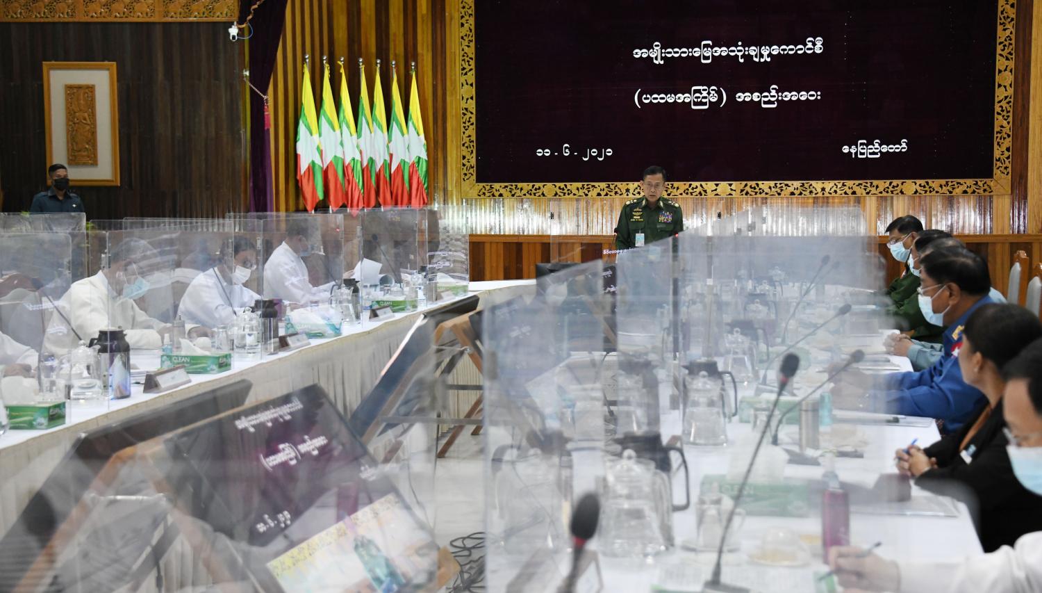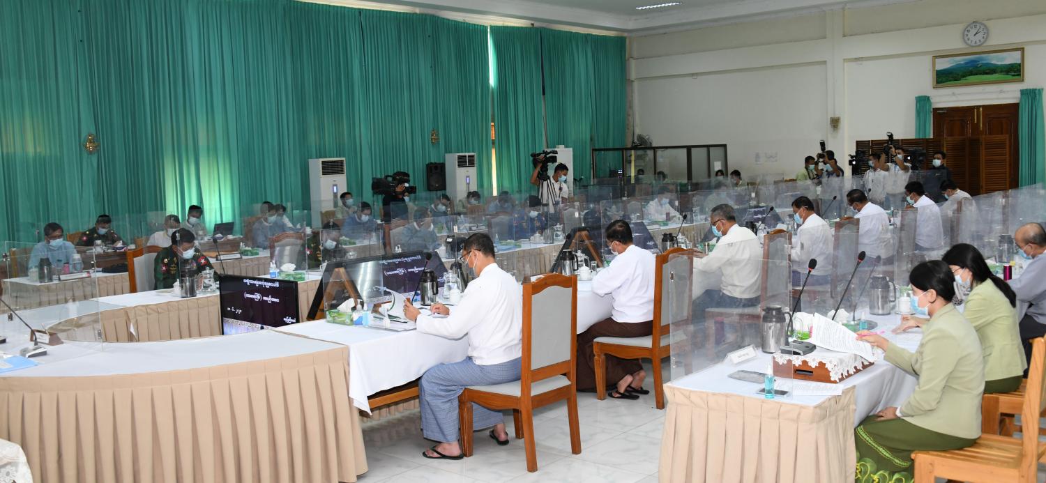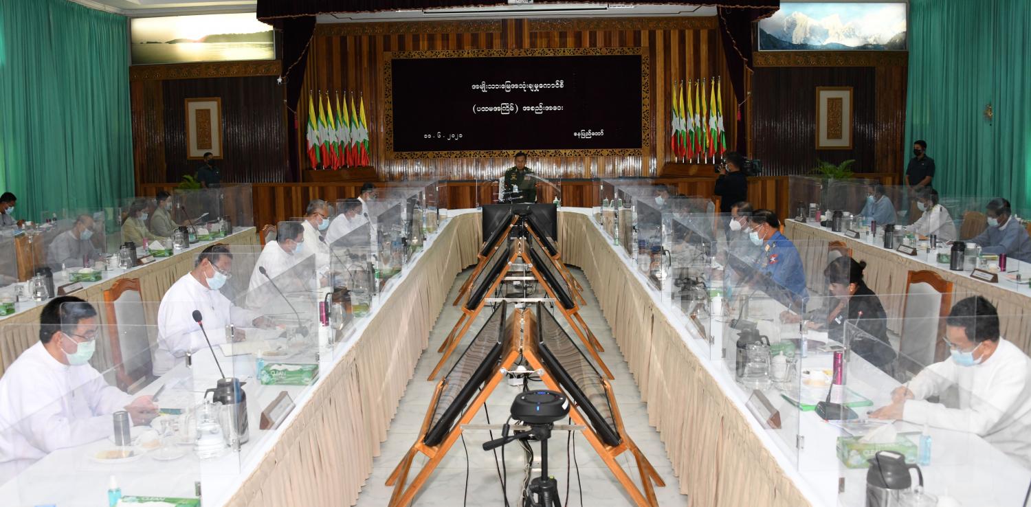 ဝန်ကြီးများ၊ ပြည်ထောင်စုရှေ့နေချုပ်၊ နေပြည်တော်ကောင်စီဉက္ကဋ္ဌ၊ တိုင်းဒေသကြီးနှင့် ပြည်နယ် စီမံအုပ်ချုပ်ရေးကောင်စီဉက္ကဋ္ဌများနှင့် တာဝန်ရှိသူများက မြန်မာနိုင်ငံအမျိုးသား မြေပုံစနစ်ဆိုင်ရာ သတင်းအချက်အလက်များလုံခြုံရေး၊ အမျိုးသားမြေအသုံးချမှုကောင်စီက ဆောင်ရွက်ရမည့် လုပ်ငန်းနယ်ပယ်ဆိုင်ရာကိစ္စရပ်များနှင့် ကောင်စီ၏မူဝါဒများ ကိုအကောင် အထည်ဖော် ဆောင်ရွက်လျှက်ရှိသည့်အခြေအနေ၊ မြေအသုံးချမှုနှင့်စပ်လျဉ်းသည့် ရင်းနှီး မြှုပ်နှံမှုဆိုင်ရာကိစ္စရပ်များ၊ အမျိုးသားမြေမူဝါဒကိုပြန်လည်သုံးသပ်နိုင်ရေး၊ အမျိုးသား မြေဉပဒေပေါ်ပေါက်ရေးနှင့် နေပြည်တော်ကောင်စီ၊ တိုင်းဒေသကြီးနှင့် ပြည်နယ်များအလိုက် မြေစီမံခန့်ခွဲဆောင်ရွက်လျက်ရှိသည့် အခြေအနေနှင့် မြေအသုံးချဆောင်ရွက်လျှက်ရှိသည့် အခြေအနေများကို ရှင်းလင်းဆွေးနွေးအကြံပြုတင်ပြကြရာ နိုင်ငံတော်စီမံအုပ်ချုပ်ရေး ကောင်စီ ဒုတိယဥက္ကဋ္ဌ က ဖြည့်စွက်ဆွေးနွေးသည်။