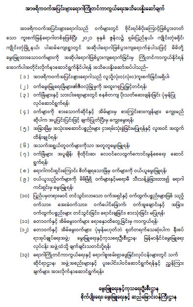 ဦးစီးဌာနနှင့် လုပ်ငန်းများ၏ ကြေညာချက်များ