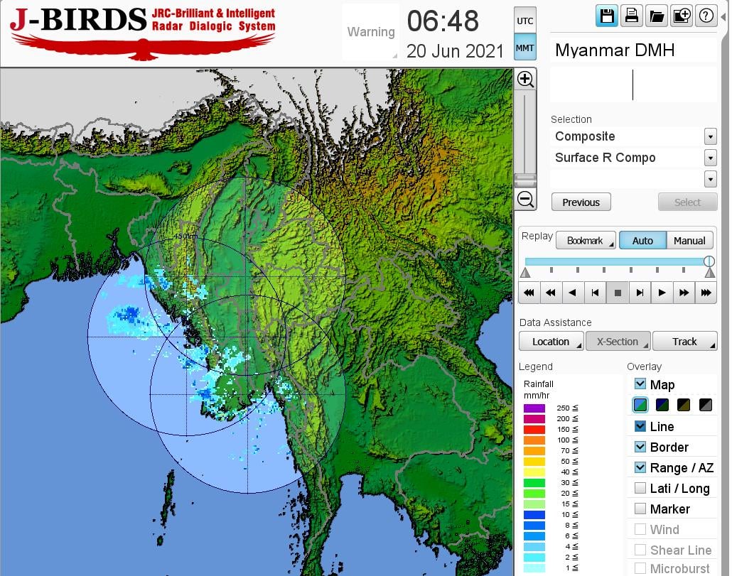 ယနေ့ညနေအထိခန့်မှန်းချက်။ရှမ်းပြည်နယ်(မြောက်ပိုင်းနှင့် အရှေ့ပိုင်း)တွင် နေရာကွက်ကျား၊ စစ်ကိုင်း တိုင်းဒေသကြီးအောက်ပိုင်း၊ မကွေးတိုင်းဒေသကြီး၊ ရှမ်းပြည်နယ်(တောင်ပိုင်း)နှင့် ကယားပြည်နယ် တို့တွင် နေရာကျဲကျဲ၊ နေပြည်တော်၊ စစ်ကိုင်းတိုင်းဒေသကြီးအထက်ပိုင်း၊ မန္တလေးတိုင်းဒေသကြီး၊ တနင်္သာရီတိုင်းဒေသကြီး၊ ကရင်ပြည်နယ်နှင့် မွန်ပြည်နယ်တို့တွင် နေရာစိပ်စိပ်နှင့် ကျန်တိုင်းဒေသကြီးနှင့် ပြည်နယ်တို့တွင် နေရာအနှံ့အပြား မိုးထစ်ချုန်းရွာပြီး၊ ဧရာဝတီတိုင်းဒေသကြီးနှင့် ရခိုင်ပြည်နယ်တို့တွင် နေရာကွက်၍ မိုးကြီးနိုင်ပါသည်။ရွာရန်ရာနှုန်းပြည့် ဖြစ်ပါသည်။