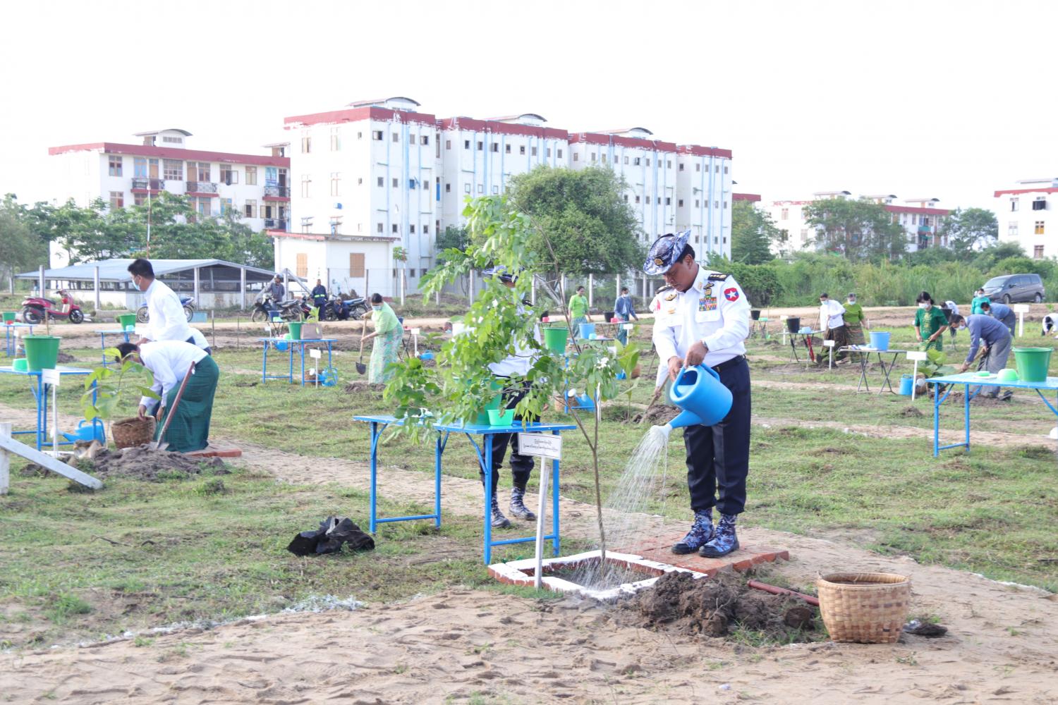 ပို့ဆောင်ရေးနှင့်ဆက်သွယ်ရေးဝန်ကြီးဌာန မိုးရာသီသစ်ပင်စိုက်ပျိုးပွဲတော်ကို ယနေ့ နံနက် ၇ နာရီတွင် နေပြည်တော်ဘူတာကြီးပုရဝုဏ်အတွင်း၌ ကျင်းပရာ ပြည်ထောင်စုဝန်ကြီး ဗိုလ်ချုပ်ကြီး တင်အောင်စန်းနှင့်ဇနီး၊ ဒုတိယဝန်ကြီးများနှင့်ဇနီးများ၊ အမြဲတမ်းအတွင်းဝန်များ၊ ညွှန်ကြားရေးမှူးချုပ်များ၊ ဦးဆောင်ညွှန်ကြားရေးမှူးများနှင့် ဇနီးများ၊ ဒုတိယ အမြဲတမ်း အတွင်းဝန်များ၊ အထွေထွေမန်နေဂျာများ နှင့် အရာထမ်း၊ အမှုထမ်းများတက်ရောက်ကြသည်။