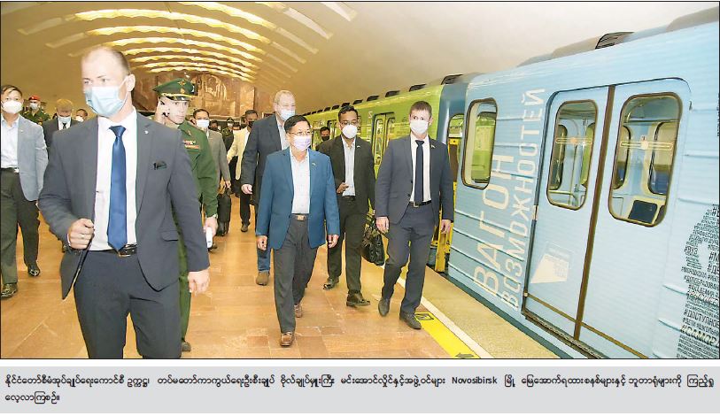 ထို့နောက် နိုင်ငံတော်စီမံ အုပ်ချုပ်ရေးကောင်စီဥက္ကဋ္ဌ၊ တပ်မတော် ကာကွယ်ရေးဦးစီးချုပ်နှင့် အဖွဲ့ဝင်များသည် Novosibirskမြို့၊ Tolmachevo လေဆိပ်သို့ ရောက်ရှိကြရာ Siberian ဒေသဒုတိယအုပ်ချုပ်ရေးမှူး Mr. Petuhov Yuri Frogravich နှင့် တာဝန်ရှိသူများက ကြိုဆိုနှုတ်ဆက်ကြသည်။ ယင်းနောက် Novosibirskမြို့၊ Metro စနစ်တွင် ဘူတာရုံ ၁၃ ခု ရှိသည့်အနက် တစ်ခုအပါအဝင်ဖြစ်သော ၁၉၉၁ ခုနှစ်တွင် စတင် ဖွင့်လှစ်ခဲ့သည့် Polschad Marksa ဘူတာသို့ ရောက်ရှိကြပြီး ၎င်းဘူတာမှ Lenin Square ဘူတာအထိ မြေအောက် ရထားစီးနင်းလိုက်ပါခဲ့၍ မြေအောက်ရထား စနစ်များ၊ ဘူတာရုံများအား ကြည့်ရှုလေ့လာ ကြသည်။