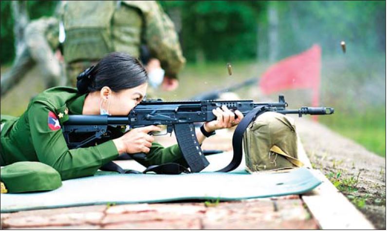 ဆက်လက်ပြီး Higher Military Command School အတွင်း မော်တော်ယာဉ်များဖြင့် လှည့်လည်ကြည့်ရှုကြပြီး လက်တွေ့ပစ်ခတ်မှု စက်ပစ်ကွင်းသို့ ရောက်ရှိလေ့လာကြည့်ရှု ကြသည်။ ထိုသို့လေ့လာစဉ် ကျောင်းအုပ်ကြီးနှင့် တာဝန်ရှိသူများ၊ သင်တန်းသားများက လက်နက်ငယ်နှင့် စနိုက်ပါ အမျိုးအစားမျိုးစုံတို့ကို လက်တွေ့ ရှင်းလင်းပစ်ခတ်ပြသခြင်းများ ပြုလုပ်ကြရာ နိုင်ငံတော်စီမံအုပ်ချုပ်ရေးကောင်စီဥက္ကဋ္ဌ၊ တပ်မတော်ကာကွယ်ရေး ဦးစီးချုပ်နှင့် တပ်မတော်အရာရှိကြီးများ၊ ကိုယ်စားလှယ်အဖွဲ့ဝင်များနှင့် အမျိုးသမီးအရာရှိများသည် ကိုယ်တိုင်ပါဝင်လက်တွေ့စမ်းသပ် ပစ်ခတ်ကြသည်။
