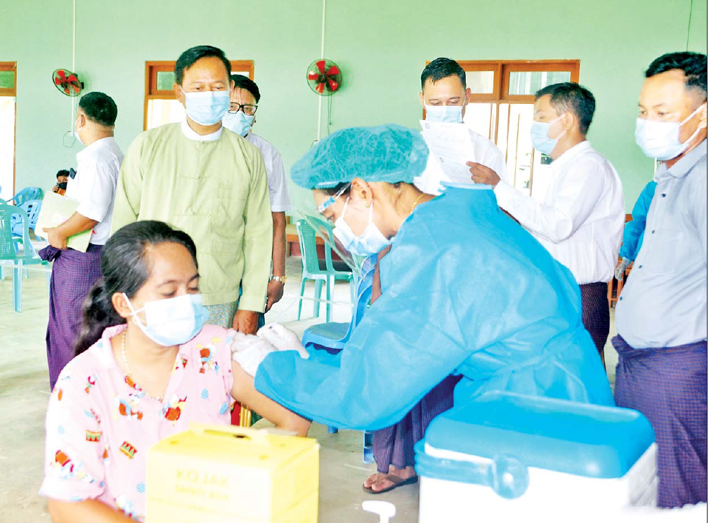 အဆိုပါ ကိုဗစ်-၁၉ ကာကွယ်ဆေးထိုးနှံခြင်းကို ခရိုင်/မြို့နယ် အထွေထွေအုပ်ချုပ်ရေးဦးစီးဌာနနှင့် ခရိုင်ပြည်သူ့ကျန်းမာရေးဦးစီးဌာနတို့မှ ဦးဆောင်၍ ခရိုင်/မြို့နယ် ထွေ/အုပ်ဝန်ထမ်းများ၊ ကျန်းမာရေး ဝန်ထမ်းများနှင့် နယ်မြေခံတပ်ရင်းများမှ ဆရာဝန်၊ ဆရာမများ ပူးပေါင်းကာ ဆေးမထိုးမီ ကိုယ်အပူချိန် တိုင်းတာခြင်း၊ သွေးပေါင်ချိန် တိုင်းတာစစ်ဆေးခြင်း များကို ဆောင်ရွက်ခဲ့ကြသည်။ ပုံမှန်အခြေအနေရှိမှ သာ ကာကွယ်ဆေးများကို စနစ်တကျ ထိုးနှံပေးခဲ့ ကြပြီး ကာကွယ်ဆေးထိုးနှံပြီးသူများအား မိနစ် ၃၀ နားနေစေကာ ကျန်းမာရေးစောင့်ရှောက်မှုများ ဆောင်ရွက်ပေးခဲ့ကြောင်း သိရသည်။