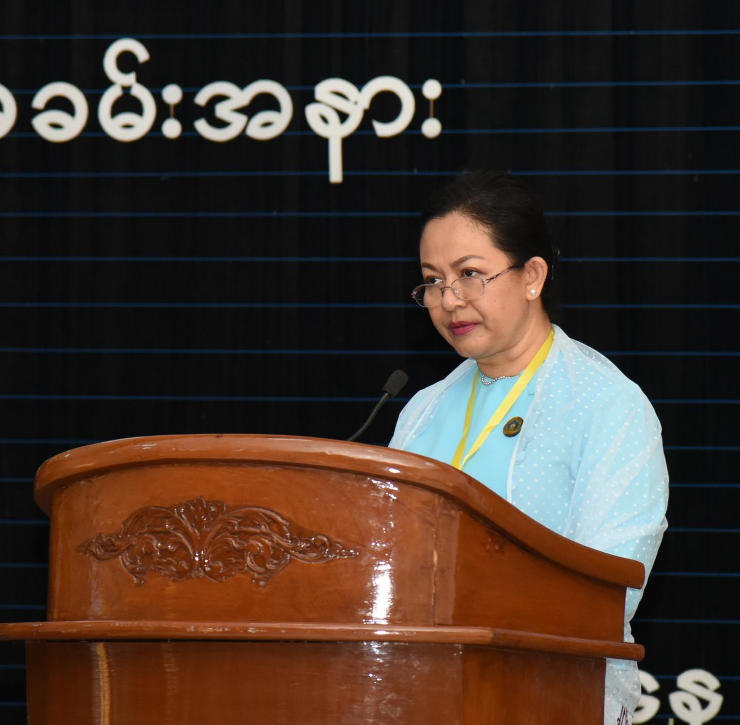 ထို့နောက် မြန်မာနိုင်ငံလုံးဆိုင်ရာ အမျိုးသမီးကော်မတီဥက္ကဋ္ဌ၊  လူမှုဝန်ထမ်း၊ ကယ်ဆယ်ရေးနှင့် ပြန်လည်နေရာချထားရေးဝန်ကြီးဌာန ပြည်ထောင်စုဝန်ကြီး ဒေါက်တာ သက်သက်ခိုင် က အမျိုးသမီးများဖွံ့ဖြိုးတိုးတက်ရေးဆိုင်ရာ လုပ်ငန်းများအကောင်အထည်ဖော် ဆောင်ရွက်နေမှု၊ နိုင်ငံတကာနှင့် ဒေသဆိုင်ရာအဆင့် ကတိကဝတ်ပြုမှုများ၊ အပြည်ပြည်ဆိုင်ရာ အမျိုးသမီးများနေ့ ကျင်းပဆောင်ရွက်နေမှု၊ လုပ်ငန်းယန္တရားဖွဲ့စည်းဆောင်ရွက်မှု၊ အမျိုးသားအဆင့် မဟာဗျူဟာ စီမံကိန်း (၂၀၁၃-၂၀၂၂) ဆောင်ရွက်မှု၊ ပဋိပက္ခအတွင်း လိင်ပိုင်းဆိုင်ရာ အကြမ်းဖက်မှု တားဆီး ကာကွယ်ရေးနှင့် တုံ့ပြန်ဆောင်ရွက်ရေးဆိုင်ရာ ဆောင်ရွက်မှုများ၊ အမျိုးသမီးများအပေါ် အကြမ်းဖက်မှု တားဆီးကာကွယ်ရေးဥပဒေ ပြဋ္ဌာန်းနိုင်ရေး ဆောင်ရွက်နေမှု၊  အိမ်တွင်း အကြမ်းဖက်မှု၊ အမျိုးသမီးများအပေါ် အကြမ်းဖက်မှု၊ သက်ငယ် မုဒိမ်းမှုများနှင့် ပတ်သက်၍ Helpline Service  ဖွင့်လှစ်ဆောင်ရွက်ထားမှု၊ ကျားမရေးရာ အခြေပြုအကြမ်းဖက် ဖြစ်ရပ်များအား တုံ့ပြန်ဆောင်ရွက်နေမှု၊ အကြမ်းဖက်ခံရသူများအား ငွေကြေးထောက်ပံ့ပေးမှု အခြေအနေ၊ အကြမ်းဖက်ခံရသည့် အမျိုးသမီးများအား တစ်နေရာတည်းတွင် ဝန်ဆောင်မှုပေးနိုင်သော စင်တာများ ဖွင့်လှစ်ဆောင်ရွက်နေမှုနှင့် အသိပညာပေး လုပ်ငန်းများဆောင်ရွက်နေမှု၊ နေပြည်တော်ကောင်စီ၊ တိုင်းဒေသကြီးနှင့် ပြည်နယ်များတွင် အိမ်တွင်းမှု သင်တန်းများ ဖွင့်လှစ် သင်ကြားနေမှု အခြေအနေ၊ အမျိုးသမီးများအား နည်းမျိုးစုံဖြင့် ခွဲခြားမှု ပပျောက်ရေးဆိုင်ရာ ကုလသမဂ္ဂ ကွန်ဗင်းရှင်း အကောင်အထည်ဖော်မှု အခြေအနေ၊ စဉ်ဆက်မပြတ် ဖွံ့ဖြိုးမှု ပန်းတိုင်များ၏ ပန်းတိုင် -၅ (SDG-Goal 5) အကောင်အထည်ဖော်မှု၊ အာဆီယံ အမျိုးသမီး ကော်မတီ ဆောင်ရွက်မှုများနှင့် ပတ်သက်၍ ရှင်းလင်းတင်ပြသည်။