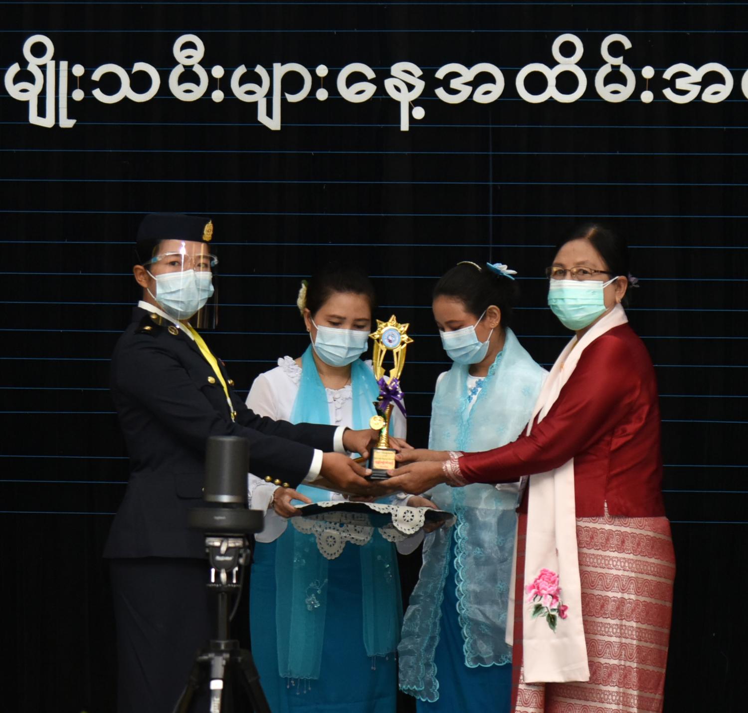 ထို့နောက် ကဏ္ဍအလိုက် ထူးချွန်အမျိုးသမီးများအား ဆုများပေးအပ်ချီးမြှင့်ရာ ကောင်စီ အဖွဲ့ဝင် ဒေါ်အေးနုစိန်က ၂၀၂၀ ပြည့်နှစ်၊ ထူးချွန်အမျိုးသမီးအရာရှိဆုရရှိသူ အမျိုးသမီး ဗိုလ်လောင်း သင်တန်း အမှတ်စဉ်(၇)မှ အကောင်းဆုံးဗိုလ်လောင်းဆုရ ဗိုလ်ဧပရယ်ချို(ရေ-၅၆၁၂) ကို လည်းကောင်း၊ ကောင်စီအဖွဲ့ဝင် Jeng Phang နော်တောင်က ၂၀၂၀ ပြည့်နှစ် ထူးချွန်အမျိုးသမီးရဲမေဆုရ ဒုတိယရဲမှူးကြီး ဝင်းနီလာကိုလည်းကောင်း၊ ကောင်စီအဖွဲ့ဝင် ဦးရွှေကြိမ်းက ထူးချွန်ကြက်ခြေနီ အမျိုးသမီးဆုရရှိသူ ကြက်ခြေနီ မြို့နယ်တပ်ဖွဲ့မှူး ဒေါ်စမ်းစမ်းမော် တို့ကိုလည်းကောင်း ဆုများပေးအပ်ချီးမြှင့်ကြသည်။