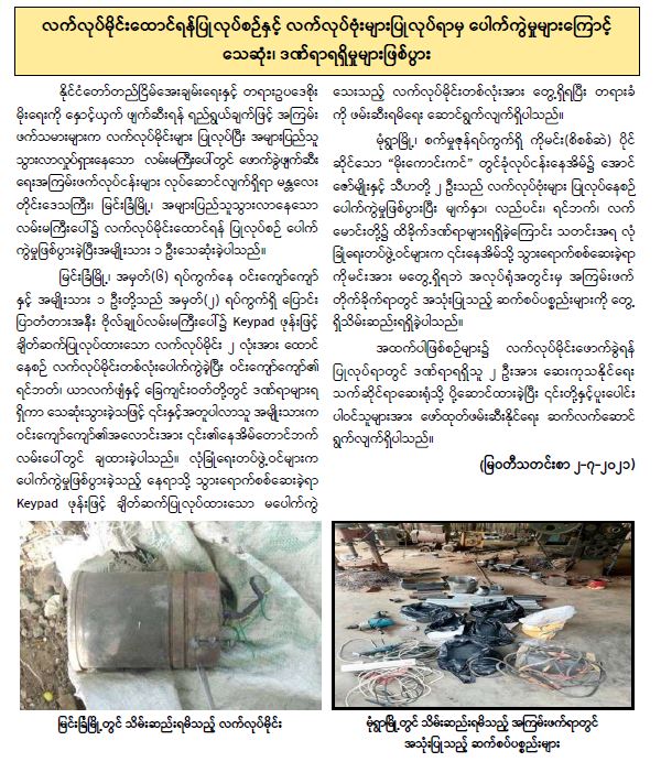 လက်လုပ်မိုင်းထောင်ရန်ပြုလုပ်စဉ်နှင့် လက်လုပ်ဗုံးများပြုလုပ်ရာမှ ပေါက်ကွဲမှုများကြောင့် သေဆုံး၊ ဒဏ်ရာရရှိမှုများဖြစ်ပွား