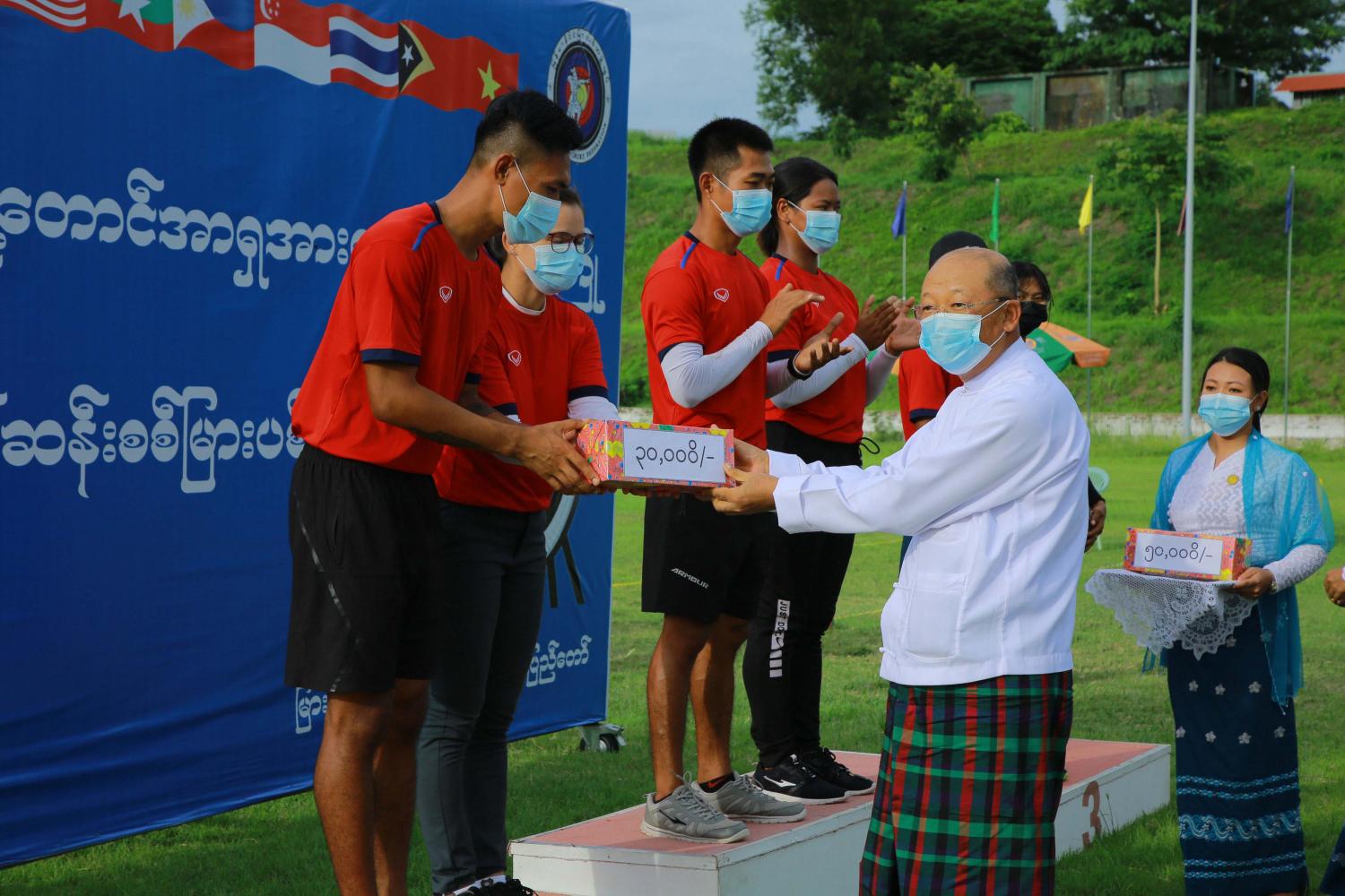 ပြိုင်ပွဲများအပြီးတွင် ဆုများချီးမြှင့်ရာတွင် Compound တစ်ဦးချင်းရှုံးထွက်ပြိုင်ပွဲတွင် ဆုရရှိ သူများကို ဒုတိယညွှန်ကြားရေးမှူးချုပ် ဦးကျော်ဦးကလည်းကောင်း၊ Recurve အမျိုးသမီး တစ်ဦးချင်းရှုံးထွက်ပြိုင်ပွဲတွင် ဆုရရှိသူများကို ဒုတိယညွှန်ကြားရေးမှူးချုပ် ဦးကျော်ဆန်းက လည်းကောင်း၊ Recurve အမျိုးသားတစ်ဦးချင်းရှုံးထွက်ပြိုင်ပွဲတွင် ဆုရရှိသူများကို ညွှန်ကြားရေး မှူးချုပ် ဦးထွန်းမြင့်ဦးက လည်းကောင်း၊ Compound Mixed Team ရှုံးထွက်ပြိုင်ပွဲတွင် ဆုရရှိသူ များကို ဒုတိယဝန်ကြီး ဦးမျိုးလှိုင်ကလည်းကောင်း၊ Recurve Mixed Team ရှုံးထွက်ပြိုင်ပွဲတွင် ဆုရရှိကြသောကစားသမားများနှင့် ပွဲစဉ်တစ်လျှောက်အကောင်းဆုံး ကစားသမားဆုရရှိသော နေလင်းဦးကို နိုင်ငံတော်စီမံအုပ်ချုပ်ရေးကောင်စီအဖွဲ့ဝင် Jeng Phang နော်တောင်က လည်းကောင်း ဆုများချီးမြှင့်ခဲ့ကြောင်း သိရသည်။