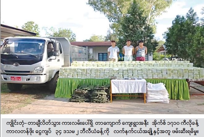 ဇွန်လ ၂၀ ရက်နေ့မှာပဲ QING SHAN စာတန်းပါ အိုက်စ်ကီလိုဂရမ် ၁၅၈၀။ ကာလတန်ဖိုး ငွေကျပ် ၃၉ ဒသမ ၅ ဘီလီယံခန့်ကို ကျိုက်ထိုမြို့ မရမ်းချောင်ကျေးရွာနဲ့ အင်္ဂပူကျေးရွာကြားမှာ ဖမ်းဆီးရမိခဲ့တာရှိပါသေးတယ်။