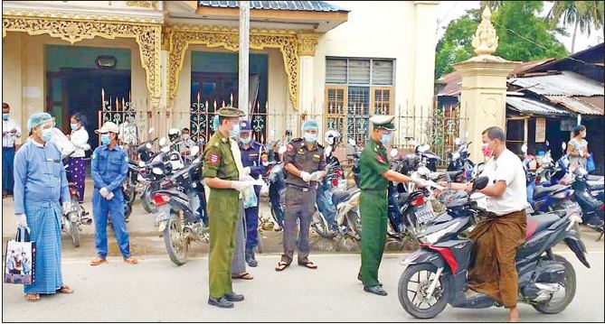 ဟင်္သာတခရိုင်၊ မအူပင်ခရိုင်နှင့် ဖျာပုံခရိုင်များအတွင်းရှိ မြို့များ၌ ပါးစပ်၊ နှာခေါင်းစည်းများ သွားရောက်ပေးဝေလှူဒါန်း