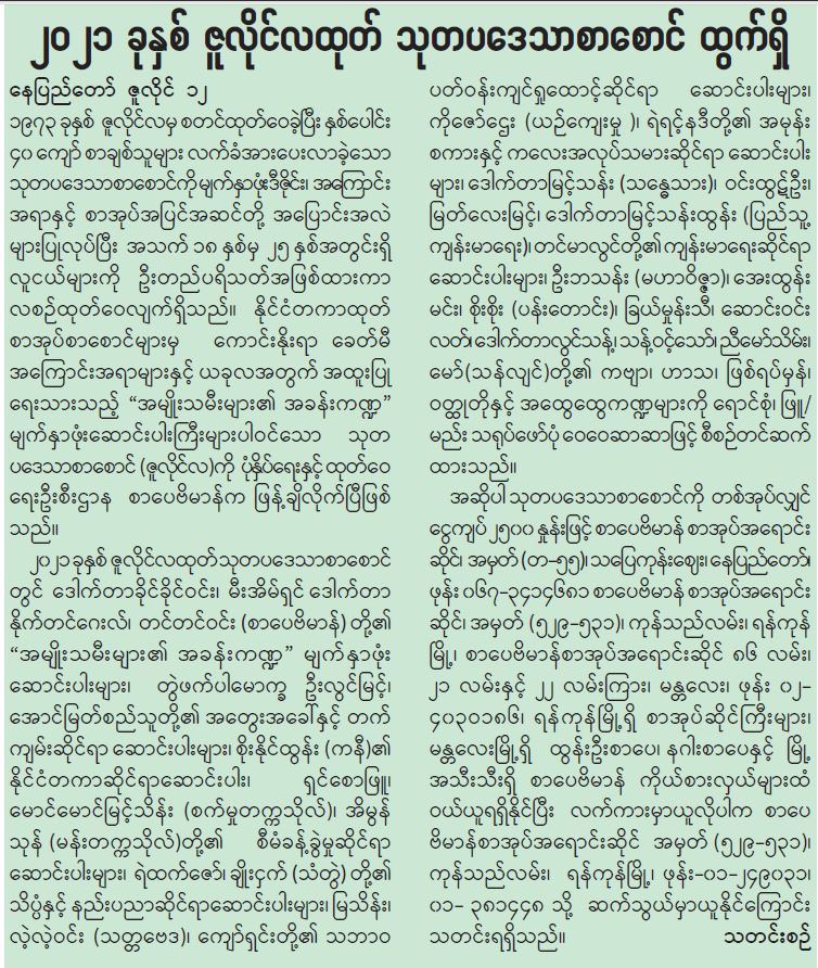 ၂၀၂၁ ခုနှစ် ဇူလိုင်လထုတ် သုတပဒေသာစာစောင် ထွက်ရှိ
