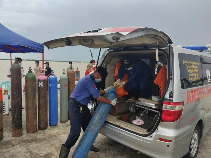ကိုဗစ်-၁၉ ရောဂါဓာတ်ခွဲအတည်ပြု ပိုးတွေ့လူနာများကို ကုသရေးလုပ်ငန်းများ ဆောင်ရွက်ရာတွင် တိုင်းဒေသကြီးနှင့် ပြည်နယ်အသီးသီး၌ အောက်ဆီဂျင် လိုအပ်ချက်များ မရှိစေရေးအတွက် ကျန်းမာရေးနှင့် အားကစားဝန်ကြီးဌာနမှ Oxygen Plant များကို တိုးမြှင့်တပ်ဆင်လည်ပတ်လျက်ရှိပြီး တပ်မတော် အနေဖြင့်လည်း တိုင်းစစ်ဌာနချုပ် နယ်မြေအသီးသီးတွင် Oxygen Plant များကို တပ်ဆင်ထုတ်လုပ်ကာ ပြည်သူ့ ဆေးရုံများနှင့် ကိုဗစ်ကုသရေး စင်တာများသို့ ပို့ဆောင်ဖြန့်ဝေလှူဒါန်းလျက်ရှိသည်။