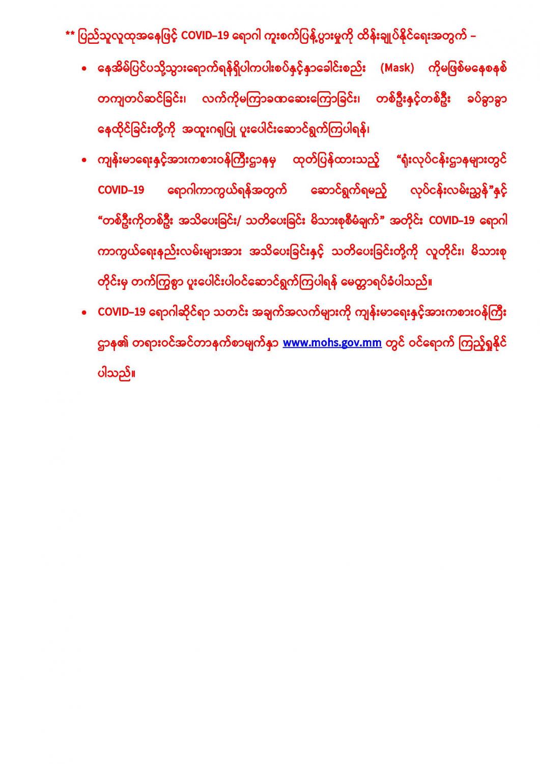 COVID-19 ရောဂါစောင့်ကြပ်ကြည့်ရှုမှုနှင့်ပတ်သက်၍သတင်းထုတ်ပြန်ခြင်း (၂၈-၇-၂၀၂၁) ရက်နေ့၊ ည (၈:၀၀)နာရီ