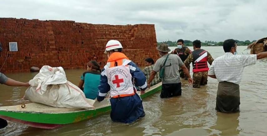 မိုးသည်းထန်စွာရွာသွန်း၍ ရေကြီးရေလျှံမှုဖြစ်ပွားသည့်နေရာများ၌ ကူညီကယ်ဆယ် ရေးလုပ်ငန်းများ ဆောင်ရွက်