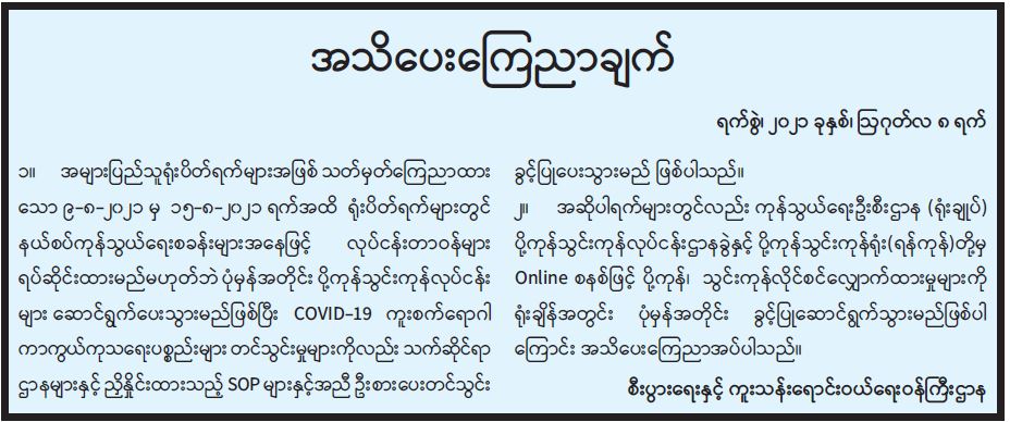 ဝန်ကြီးဌာန ကြေညာချက်များ