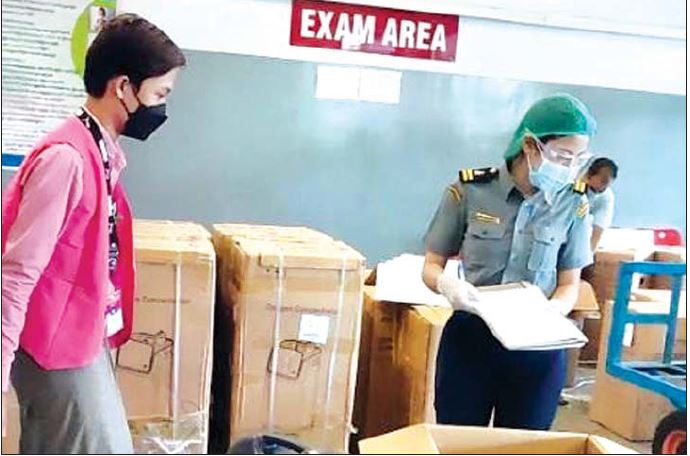 အကောက်ခွန်ဦးစီးဌာနအနေဖြင့်  ကိုဗစ်-၁၉ ရောဂါ ကာကွယ်၊ ထိန်းချုပ်၊ ကုသရေးနှင့် ပစ္စည်းများအား လေကြောင်း၊ ဆိပ်ကမ်း၊ နယ်စပ်ဂိတ်အသီးသီးမှ ရုံးပိတ်ရက်ရှည်ကာလအတွင်း နေ့စဉ်ရုံးပိတ်ရက်မရှိ လွယ်ကူချောမွေ့စွာ စစ်ဆေးထုတ်ပေးလျက်ရှိရာ ယနေ့တွင် ရန်ကုန် အပြည်ပြည်ဆိုင်ရာ လေဆိပ်တွင် ကုမ္ပဏီ ၅၂ ခုမှ Nasal Cannuala အခု ၁၀၀၀၀၊ Cnoxane 40 Mg Injection 322 Joooi Dexanic Inj 4 MG 322 ၁၀၀၀၀၊ Enoxaparin Sodium Injection 322 joooi Enoxaparin Inj 40 MG အခု ၁၁၀၀၀၊ Enoxaparin Inj 60 MG 392 ၁၁၀၀၀၊ Favipiravir 400 MG အခု ၄၀၀၀၀၊ Flow meter အခု ၁၀၇၀၀ iOximeter ၁၃၅၆၇ ခု၊ Oxygen Concentrator pjes 21Oxygen Mask 302 000001 Oxygen Regulator အခု ၂၀၀၊ Remdesivir 100 MG Injection အခု ၉၃၄၀၀၊ Oxygen Concentrator Spare parts pagal Thermometer i Welcid Tablets 500 MG အခု ၁၀၀၀၊ Zincmink Tablet 50 MG 322 ၁၀၀၀၊ နယ်စပ်(မူဆယ်၊ ချင်းရွှေဟော်၊ ကန်ပိုက်တီး၊ တမူး၊ မူဆယ်၊ မြဝတီ) တွင် ကုမ္ပဏီ ၃၅ ခုမှ၊ Mask GGGco Kg Disposable Cap အခု ၃၈၅၀၊ Gloves ၁၀၀၀ Kg Liquid Oxygen ၄.၄၆ m Liquid Oxygen(၃၉ ဒသမ ၄၇) တန်၊ Disposable Syring အခု Jooooi Nasal Cannula 322 ၁၃၅၀၀ ၊ Cylinder ၈၃၂၄ ခု၊ Oxygen Concentrator 900 al Flow Meter အခု ၂၀၀၀။ Oxygen Cylinder Trolley 302 ( ၁၀၀၊ Oxygen Face Mask အခု ၁၂၀၀၊ Regulator အခု ၁၉၂၀၊ Oximeter အခု ၅၀၀၀ တို့အား ထုတ်ပေးခဲ့ကြောင်း သတင်းရရှိ သည်။