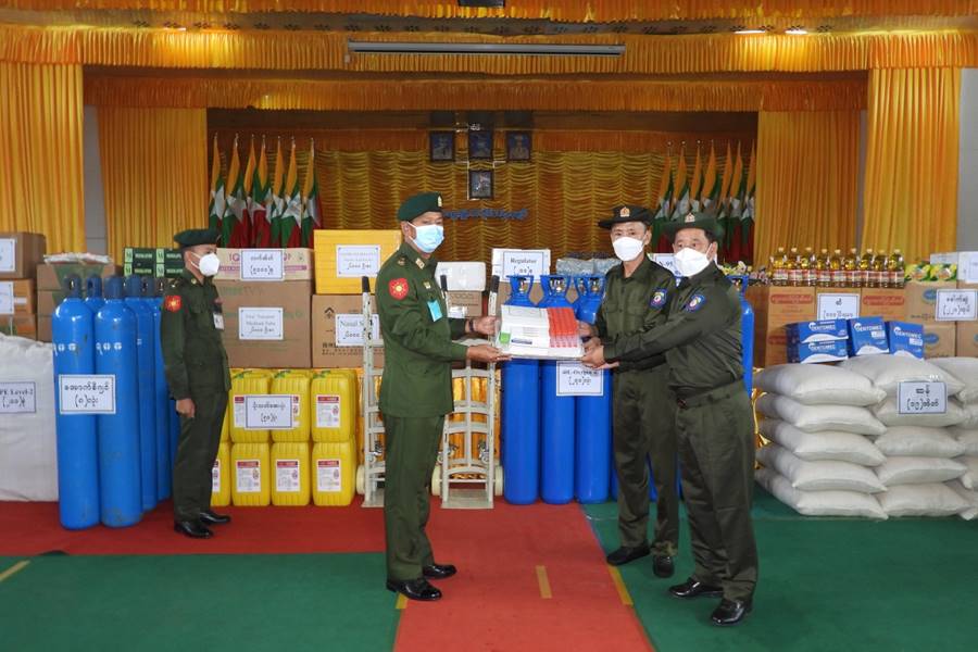 ကိုဗစ်-၁၉ ရောဂါ ဓာတ်ခွဲအတည်ပြု ပိုးတွေ့လူနာများနှင့် သီးသန့်စောင့် ကြည့်ရမည့်သူများကို ကုသရေးလုပ်ငန်းများ ဆောင်ရွက်ရာတွင် အောက်ဆီဂျင် လိုအပ်ချက်များကို တစ်ဖက် တစ်လမ်းမှ အထောက်အကူပြုစေရန်အတွက် တပ်မတော်နှင့် အလှူရှင်များက အောက်ဆီဂျင် အိုးများ၊ ရောဂါကာကွယ်ရေး အထောက် အကူပြုပစ္စည်းများနှင့် အာဟာရဖြည့် စားသောက် ဖွယ်ရာများကို တိုင်းဒေသကြီးနှင့် ပြည်နယ်အသီးသီးရှိ ပြည်သူ့ဆေးရုံများ၊ တပ်မတော် ဆေးရုံများ၊ ကျန်းမာရေးဌာနများ၊ ကိုဗစ်စင်တာများနှင့် လူမှုကူညီရေး အသင်းအဖွဲ့များသို့ ပေးပို့လှူဒါန်းလျက်ရှိသည်။