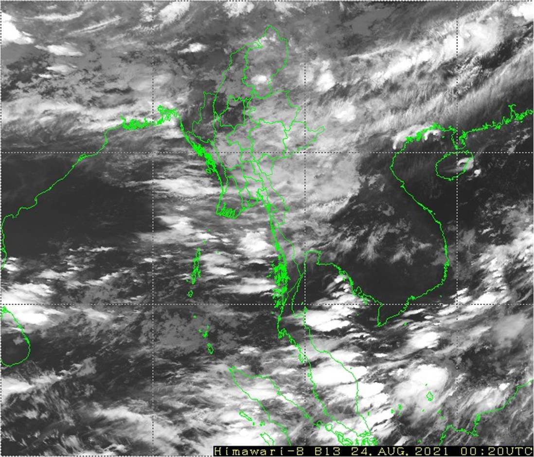 ဘင်္ဂလားပင်လယ်အော်အ‌ခြေအနေ။ ကပ္ပလီပင်လယ်ပြင်နှင့် ဘင်္ဂလားပင်လယ်အော်တောင်ပိုင်းတို့တွင် မုတ်သုံလေ အားအနည်းငယ်မှ အားအသင့်အတင့် ရှိနေပြီး၊ ကျန်ဘင်္ဂလားပင်လယ်အော်တွင် မုတ်သုံလေ အားနည်းနေပါသည်။
