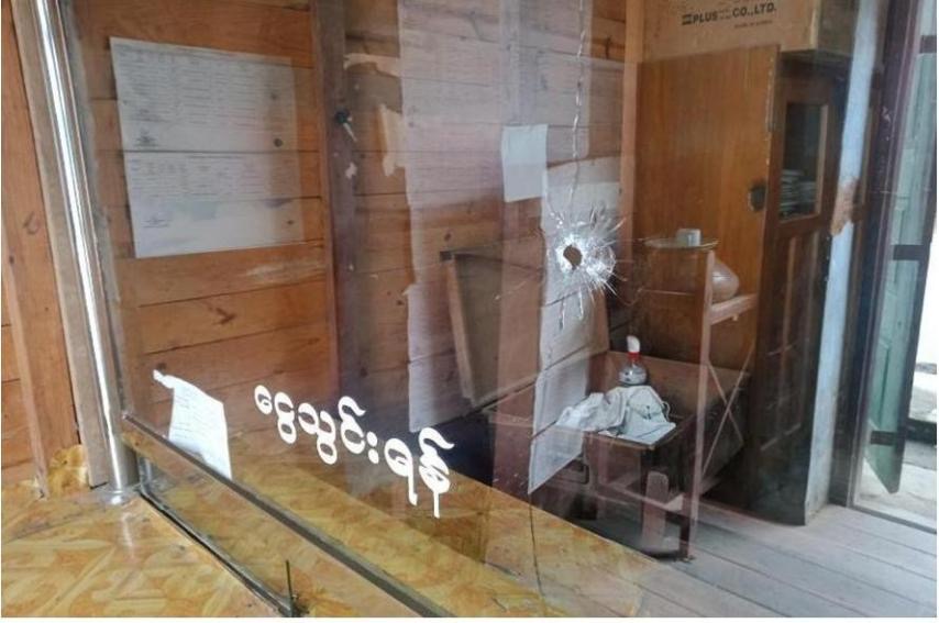 ထို့နောက် အကြမ်းဖက်သောင်းကျန်းသူများသည် သေနတ်များပစ်ဖောက် အသံပေး ခြောက်လှန့်၍ ဘဏ်အတွင်း သို့ ဝင်ရောက်ပြီး ဘဏ်အတွင်းရှိရုံးလုပ်ငန်းသုံးပစ္စည်းများ၊ ကွန်ပျူတာနှင့် CCTV များအား သေနတ်ဖြင့် ပစ်ခတ်ဖျက်ဆီးကာ ဘဏ်ငွေထုတ်ကောင်တာကို အများပြည်သူများနှင့် ပင်စင်စား မိဘပြည်သူများအား ငွေထုတ်ပေးရန် အသင့်ပြင်ဆင်ထားရှိသည့် နိုင်ငံတော်ပိုင်ငွေကျပ် ၃၈၈ သိန်းကျော်နှင့် လုံခြုံရေးတပ်ဖွဲ့ဝင်များ ကိုင်ဆောင်သည့် လက်နက်ငယ် အချို့အားလုယက်ယူဆောင်ကာ ဘဏ်အတွင်းမှ ပြန်လည်ထွက်ပြေး သွားသည်။