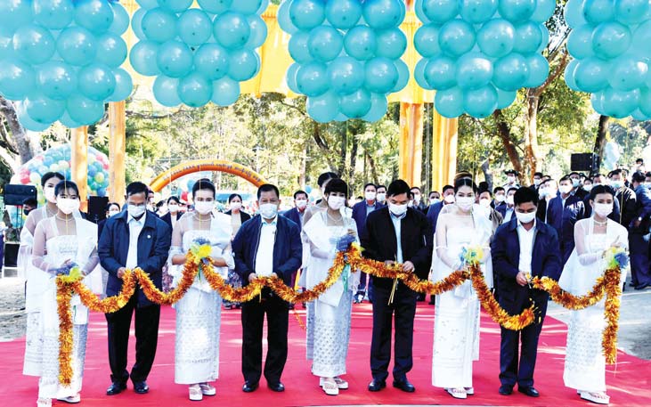 ယင်းနောက် နိုင်ငံတော်စီမံအုပ်ချုပ်ရေးကောင်စီဥက္ကဋ္ဌ နိုင်ငံတော် ဝန်ကြီးချုပ် နှင့်အဖွဲ့ဝင်များသည် ပွဲကောက်ရေတံခွန်အပန်းဖြေစခန်း အတွင်း အမိုးပါ ကလေးအားကစားကွင်းတွင် နယ်လှည့်ပြည်သူ့ ဆက်ဆံရေးတပ်ဖွဲ့မှ မျက်လှည့် ပြသမှု ပြကွက်များအား ကြည့်ရှုအားပေးပြီး ချီးမြှင့်ငွေများပေးအပ်ကာ ဒေသထွက် ပစ္စည်းအရောင်းဆိုင်များ၊ Smart P ရှပ်အင်္ကျီအရောင်းဆိုင်၊ နေရောင်ခြည် စွမ်းအင်သုံး စိုက်ပျိုးရေးရေသုံးဆိုလာနည်းစနစ်နှင့် စိုက်ခင်းများအားဆိုလာနည်း စနစ်ဖြင့် ရေဖြန်း နေမှုများအား လှည့်လည်ကြည့်ရှုအားပေးသည်။