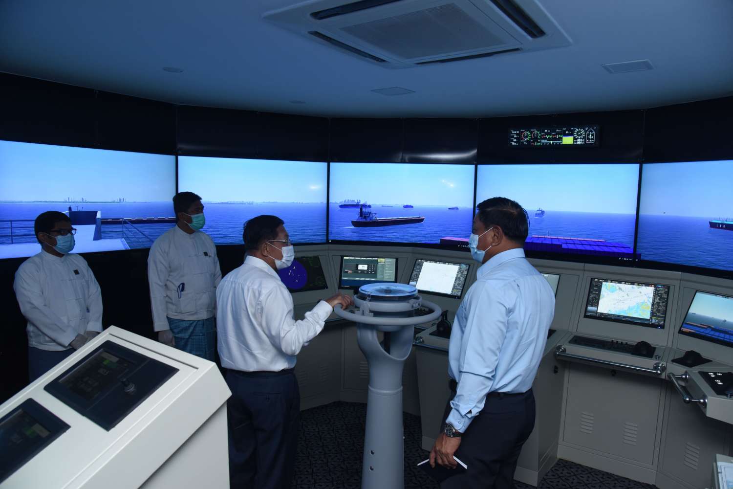 ယင်းနောက်နိုင်ငံတော်စီမံအုပ်ချုပ်ရေးကောင်စီဥက္ကဋ္ဌ နိုင်ငံတော်ဝန်ကြီးချုပ် နှင့်အဖွဲ့ဝင်များသည် တက္ကသိုလ်အတွင်းရှိ သင်ကြားရေး၊ စီမံရေး တို့အား အရည် အသွေးစိစစ်ခန့်ခွဲရေးရုံး၊ စာကြည့်တိုက်တို့အား ကြည့်ရှုခဲ့ပြီး Full Mission Engine Room Simulator ဌာနတို့တွင် အင်ဂျင်နှင့် ဆက်စပ်ပစ္စည်းများအား ကျွမ်းကျင်စွာ မောင်နှင်နိုင်ရေး၊ အရေးပေါ်အခြေအနေအား ဖြေရှင်းဆောင်ရွက်နိုင်ရေး လေ့ကျင့် ဆောင်ရွက်ပေးမှု အခြေအနေများအား လှည့်လည်ကြည့်ရှုစစ်ဆေးရာ ပါမောက္ခချုပ်နှင့် တာဝန်ရှိသူများက လိုက်လံရှင်းလင်းပြခဲ့ပြီး နိုင်ငံတော်စီမံအုပ်ချုပ်ရေး ကောင်စီဥက္ကဋ္ဌ နိုင်ငံတော်ဝန်ကြီးချုပ်က Simulator များဖြင့် လေ့ကျင့်ပေးရာတွင် ရေယာဉ်ငယ်မှ ပင်လယ်သွား သင်္ဘောကြီးများအထိ အဆင့်ဆင့် အခြေခံမှ စ၍ သင်ကြားလေ့ကျင့်ပေးရန် လိုအပ်သည့် အခြေအနေများနှင့် အခြားလိုအပ်သည်များကို ဆွေးနွေး ပြောကြားခဲ့သည်။
