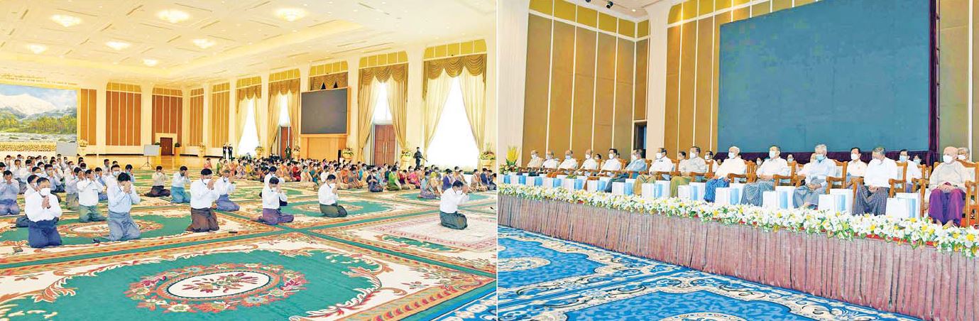 ၎င်းနောက် နိုင်ငံတော်စီမံအုပ်ချုပ်ရေးကောင်စီဥက္ကဋ္ဌ တပ်မတော်ကာကွယ်ရေး ဦးစီးချုပ်နှင့်ဇနီး၊ တက်ရောက်လာကြသည့် တပ်မတော်အရာရှိကြီးများနှင့် ဇနီးများက တပ်မတော်(ကြည်း၊ ရေ၊ လေ) မိသားစုများကိုယ်စား အငြိမ်းစားတပ်မတော်အရာရှိကြီး များအား မြန်မာ့ရိုးရာထုံးတမ်းအစဉ်အလာနှင့် အညီ ရိုသေစွာဖြင့် ဂါရဝပြုကန်တော့ကြသည်။