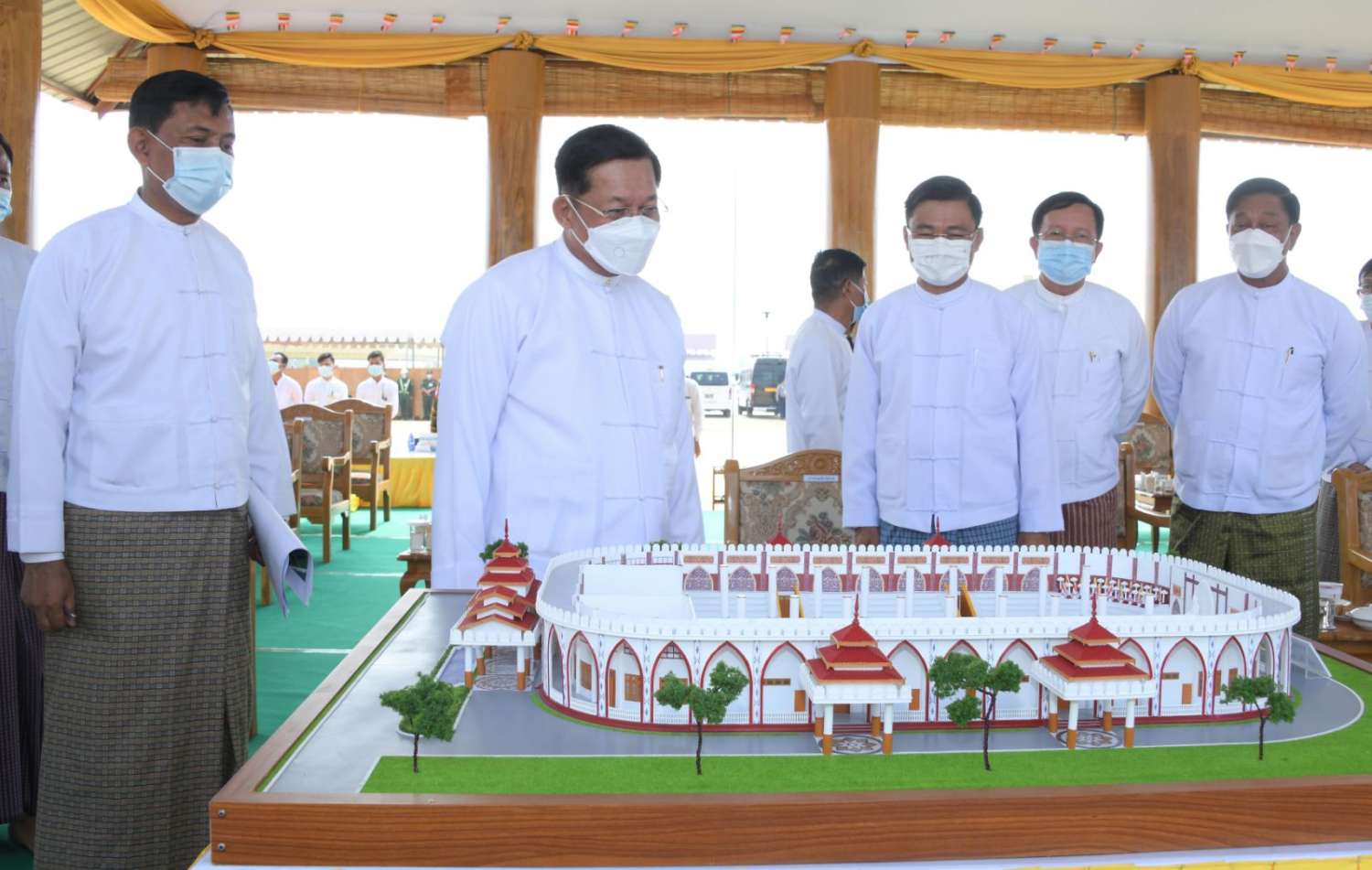 ယင်းနောက် နိုင်ငံတော်စီမံအုပ်ချုပ်ရေးကောင်စီဥက္ကဋ္ဌ နိုင်ငံတော်ဝန်ကြီးချုပ် က သာသနာ့ဗိမာန် အဂ္ဂါဓိပတိ ဝိသုံဂါမသိမ်တော် ပုံစံငယ်ကိုကြည့်ရှုပြီး တာဝန်ရှိသူများ၏ တင်ပြချက်များအပေါ် လိုအပ်သည်များ မှာကြားဖြည့်ဆည်း ဆောင်ရွက်ပေးသည်။