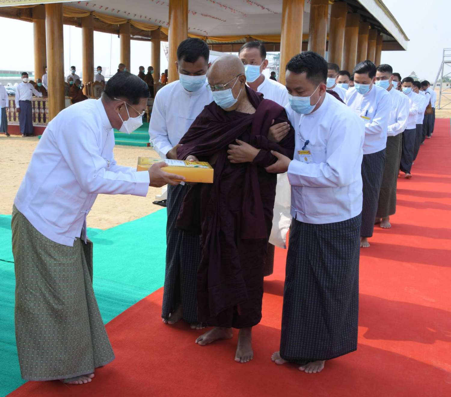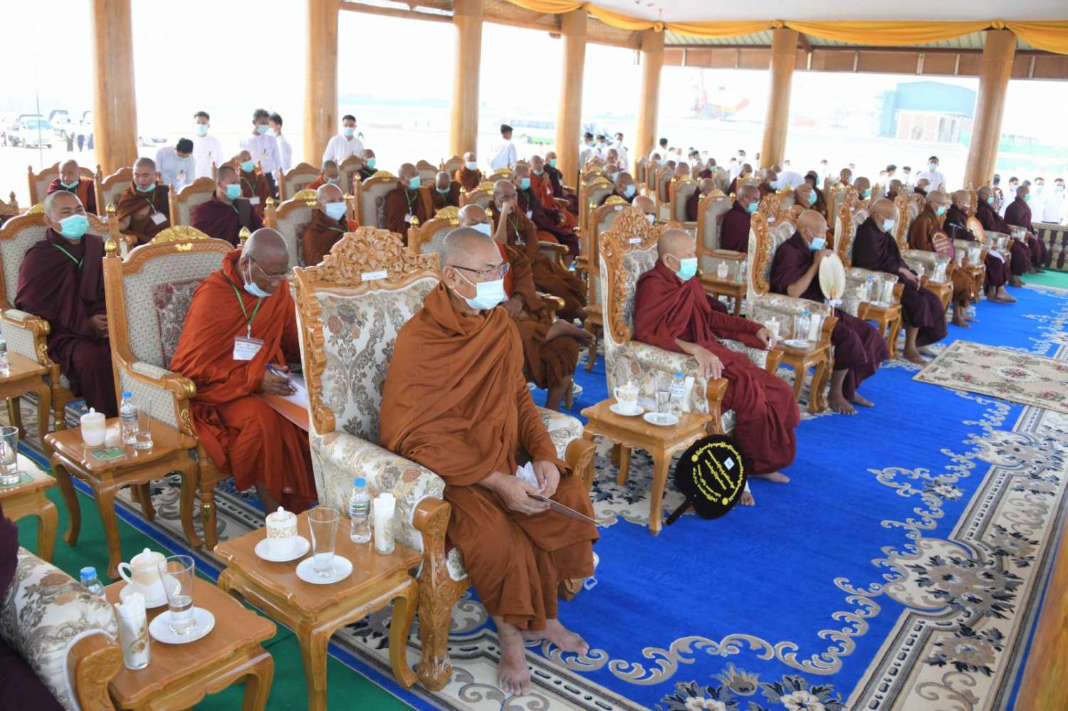 အခမ်းအနားသို့ နေပြည်တော်၊ လယ်ဝေးမြို့၊ ပေါက်မြိုင်ကျောင်းတိုက် ပဓာန နာယက အဘိဓဇမဟာရဋ္ဌဂုရု ဘဒ္ဒန္တဇနိန္ဒ၊ တပ်ကုန်းမြို့၊ မဟာသီဟနာဒ ကျောင်းတိုက်ဆရာတော် အဘိဓဇမဟာရဋ္ဌဂုရု ဘဒ္ဒန္တ အာစိဏ္ဏတို့ အမှူးပြုသည့် သံဃာတော် ၅၄ ပါး ကြွရောက်ချီးမြှင့်တော်မူကြပြီး နိုင်ငံတော်စီမံအုပ်ချုပ်ရေး ကောင်စီဥက္ကဋ္ဌ နိုင်ငံတော်ဝန်ကြီးချုပ် ဗိုလ်ချုပ်မှူးကြီး မင်းအောင်လှိုင်၊ ကောင်စီဝင်များ ဖြစ်ကြသည့် ဗိုလ်ချုပ်ကြီး မြထွန်းဦး၊ ဗိုလ်ချုပ်ကြီး တင်အောင်စန်း၊ ဒုတိယဗိုလ်ချုပ်ကြီး မိုးမြင့်ထွန်း၊ မန်းငြိမ်းမောင်၊ ဦးစိုင်းလုံးဆိုင်၊ ဒေါက်တာဗညားအောင်မိုး၊ ဦးရွှေကြိမ်း၊ ဒုတိယဗိုလ်ချုပ်ကြီး ရာပြည့်၊ အတွင်းရေးမှူး ဒုတိယဗိုလ်ချုပ်ကြီး အောင်လင်းဒွေး၊ တွဲဖက်အတွင်းရေးမှူး ဒုတိယဗိုလ်ချုပ်ကြီး ရဲဝင်းဦး၊ ပြည်ထောင်စု တရားသူကြီးချုပ် ဦးထွန်းထွန်းဦး၊ နိုင်ငံတော်ဖွဲ့စည်းပုံအခြေခံဥပဒေဆိုင်ရာ ခုံရုံးဥက္ကဋ္ဌ ဦးသာဋ္ဌေး၊ ပြည်ထောင်စုရွေးကောက်ပွဲကော်မရှင်ဥက္ကဋ္ဌ ဦးသိန်းစိုး၊ ပြည်ထောင်စုဝန်ကြီးများ၊ ပြည်ထောင်စုစာရင်းစစ်ချုပ်၊ နေပြည်တော်ကောင်စီဥက္ကဋ္ဌ၊ မြန်မာနိုင်ငံတော် ဗဟိုဘဏ်ဥက္ကဋ္ဌ၊ အဂတိလိုက်စားမှုတိုက်ဖျက်ရေး ကော်မရှင် ဥက္ကဋ္ဌ၊ နေပြည်တော်တိုင်းစစ်ဌာနချုပ် တိုင်းမှူးနှင့် တာဝန်ရှိသူများ တက်ရောက်ကြသည်။