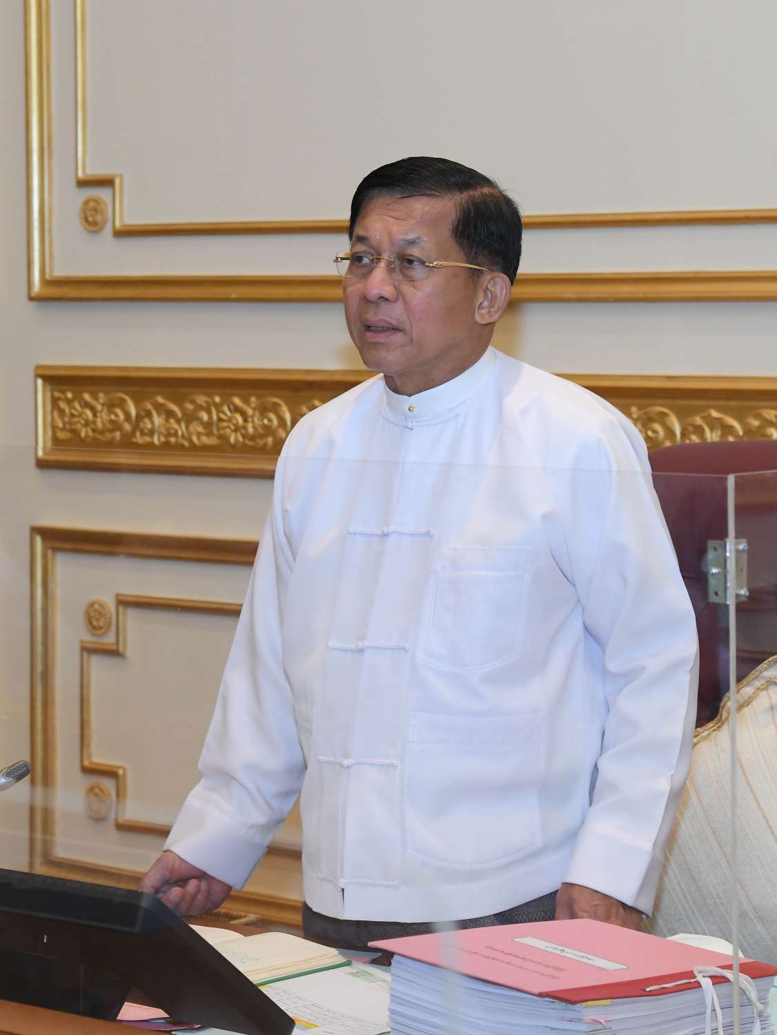 ပြည်ထောင်စုအစိုးရအဖွဲ့ အစည်းအဝေး အမှတ်စဉ်(၄/၂၀၂၂)ကို ယနေ့မွန်းလွဲပိုင်းတွင် နေပြည်တော်ရှိ နိုင်ငံတော်စီမံအုပ်ချုပ်ရေးကောင်စီဥက္ကဋ္ဌရုံး အစည်းအဝေးခန်းမ၌ ကျင်းပရာ နိုင်ငံတော်စီမံအုပ်ချုပ်ရေးကောင်စီဥက္ကဋ္ဌ နိုင်ငံတော်ဝန်ကြီးချုပ် ဗိုလ်ချုပ်မှူးကြီး မင်းအောင်လှိုင် တက်ရောက်အမှာစကား ပြောကြားသည်။