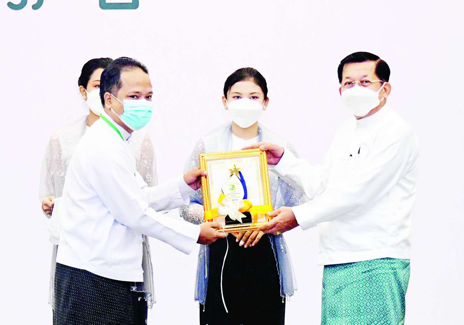 ဆက်လက်ပြီး နိုင်ငံတော်စီမံအုပ်ချုပ်ရေးကောင်စီ ဥက္ကဋ္ဌ၊ တပ်မတော်ကာကွယ်ရေး ဦးစီးချုပ် ဗိုလ်ချုပ်မှူးကြီး မင်းအောင်လှိုင် က ကမ္ဘာ့ပတ်ဝန်းကျင် ထိန်းသိမ်းရေးနေ့ အထိမ်းအမှတ် စာစီစာကုံး ပထမဆုရရှိသည့် ဒေါ်မိုးမိုးသွင် (ရနံ့မျိုး-ဟင်္သာတ)၊ ဒုတိယဆုရရှိသည့် ဒေါ်ငြိမ်းငြိမ်းစန္ဒာဝင်း (အမရာ)၊ တတိယဆုရရှိသည့် ဒေါ်နုနုအေး (နုနုအေး-ဇလွန်)၊ ဆောင်းပါး ပထမဆုရရှိသည့် ဦးအာကာစံ (အာကာစံ)၊ ဒုတိယဆုရရှိသည့် ဦးဇော်လွင်ဦး (ဇော်လွင်ဦး-ဟင်္သာတ)နှင့် တတိယဆု ရရှိသည့် ဦးမောင်သန်းညွန့် (စိမ်းညိုအောင်) တို့ကို ဆုများ ပေးအပ်ချီးမြှင့်သည်။