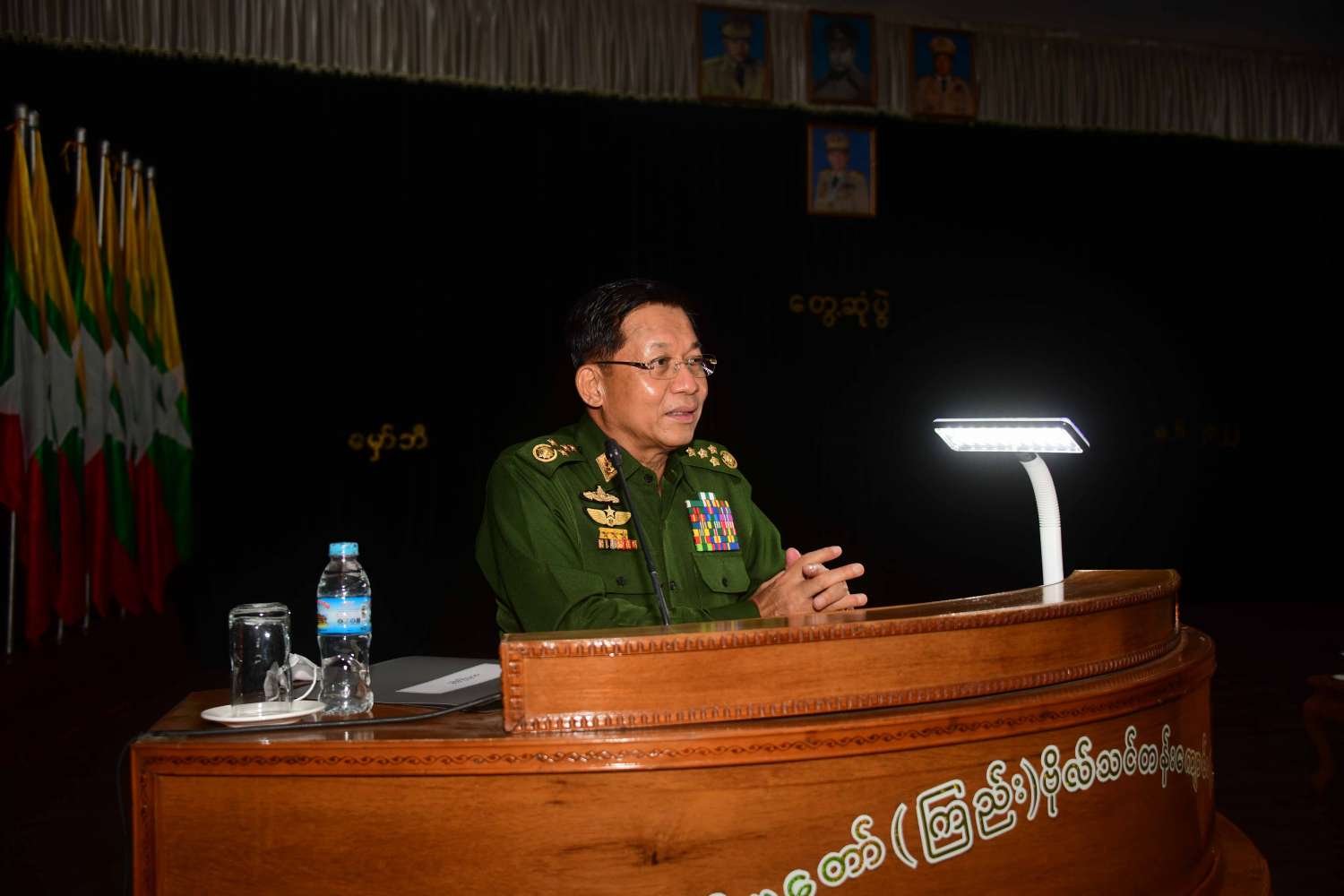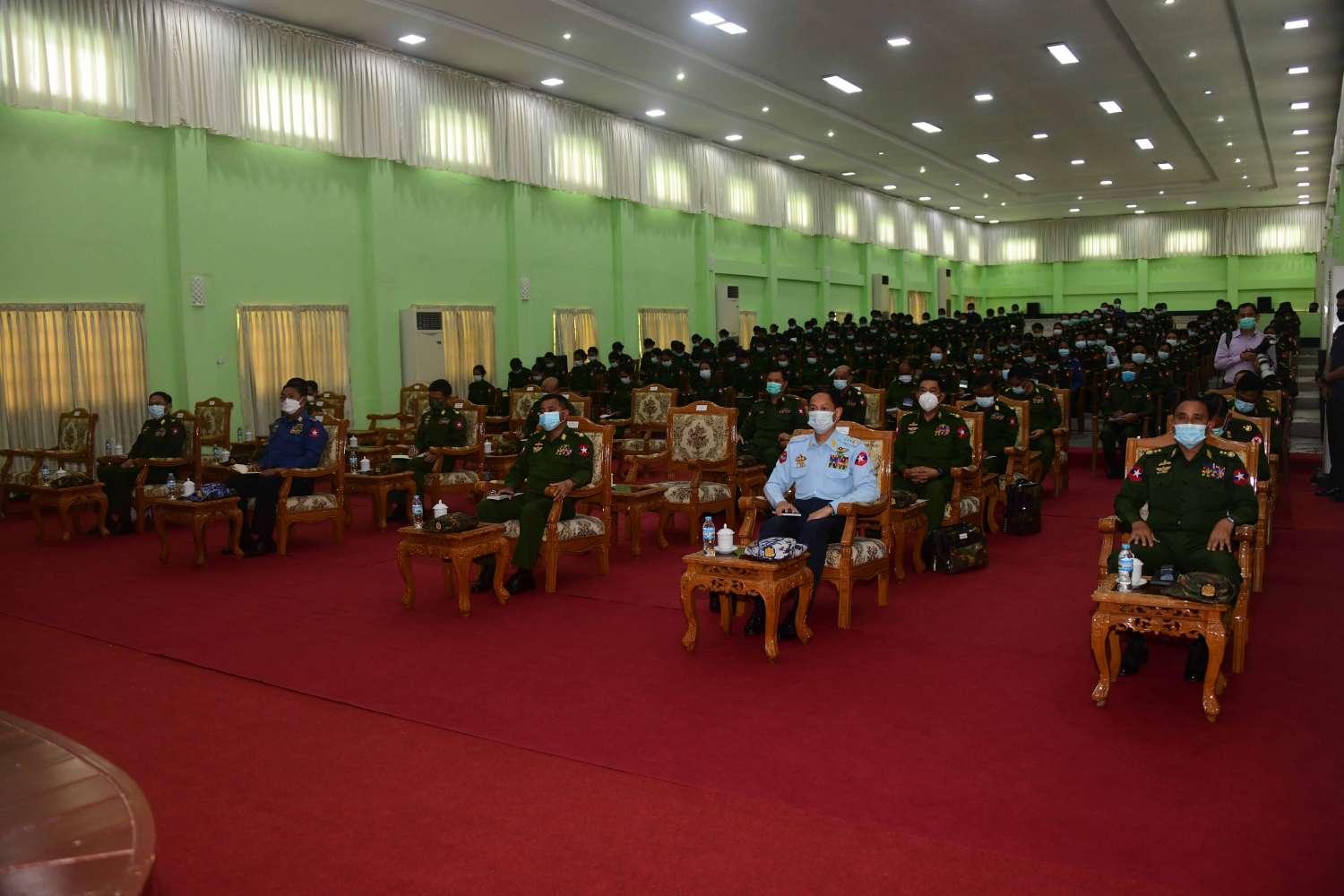 နိုင်ငံဖွံ့ဖြိုးတိုးတက်ရေးအတွက် နိုင်ငံရေးအရ တည်ငြိမ်အေးချမ်းမှုနှင့် လုံခြုံရေးအရ တည်ငြိမ်အေးချမ်းမှုများ ရှိရန်လိုကြောင်း၊ မိမိတို့နိုင်ငံအနေဖြင့် ပြည်သူများလိုလားသည့် ပါတီစုံဒီမိုကရေစီစနစ်ကို လျှောက်လှမ်းလျက်ရှိပြီး ခေတ်အဆက်ဆက် နိုင်ငံ၏လိုအပ်ချက်များအရ တပ်မတော်မှ နိုင်ငံတော်တာဝန်များကို ဝင်ရောက် ထမ်းဆောင်ခဲ့ရသည်များရှိကြောင်း၊ ယခုအခါ မိမိတို့အနေဖြင့်လည်း ၂၀၂၀ ပြည့်နှစ် ပါတီစုံဒီမိုကရေစီ အထွေထွေရွေးကောက်ပွဲတွင် မဲမသမာမှုများဖြစ်ပေါ်ခဲ့ခြင်းကြောင့် တာဝန်ရှိသူများမှ ဥပဒေအရ တာဝန်ယူရှင်းလင်းခြင်း မပြုသည့်အတွက် ဖွဲ့စည်းပုံအခြေခံ ဥပဒေနှင့်အညီ နိုင်ငံတော်၏တာဝန်များကို ထမ်းဆောင်ခဲ့ရခြင်းဖြစ်ကြောင်း၊ ယခုအခါ ပြည်တွင်းငြိမ်းချမ်းရေးရရှိရန်အတွက် မိမိတို့အနေဖြင့် ငြိမ်းချမ်းရေးဆွေးနွေးပွဲများပြုလုပ်၍ ဆွေးနွေးလျက်ရှိပြီး ကျန်ရှိသည့်အဖွဲ့များနှင့်လည်း ဆက်လက်ဆွေးနွေးသွားမည်ဖြစ်ကြောင်း၊ ရွေးကောက်ပွဲ ကျင်းပနိုင်ရေးအတွက် တစ်နိုင်လုံး ငြိမ်းချမ်းမှုရှိရန်လိုအပ်ကြောင်း၊ ရွေးကောက်ပွဲ မကျင်းပနိုင်ပါက ၎င်းနယ်မြေများရှိ ပြည်သူများ၏ အခွင့်အရေးများ ဆုံးရှုံးမှုရှိလာနိုင်ကြောင်း၊ ထို့ကြောင့် အထွေထွေရွေးကောက်ပွဲ (General Election) ဆိုသည့်စကားနှင့်အညီ ရွေးကောက်ပွဲကို တစ်နိုင်ငံလုံး ကျင်းပနိုင်ရန်လိုကြောင်း၊ သို့မှသာ ပြည်သူများလိုလားသည့် ပါတီစုံဒီမိုကရေစီစနစ်ကို မှန်မှန်ကန်ကန် ဖော်ဆောင်နိုင်မည်ဖြစ်ပြီး ဒီမိုကရေစီနှင့် ဖက်ဒရယ်ကို အခြေခံသည့် ပြည်ထောင်စုစနစ်ကို သွားနိုင်မည်ဖြစ်ကြောင်း၊ ထိုသို့ ဆောင်ရွက်နိုင်ရန်အတွက် တပ်မတော်သားများအနေဖြင့် မိမိတို့ ကျရာတာဝန်များကို စစ်သားစိတ်မွေး၍ ကျေပွန်စွာ ဆောင်ရွက်ကြရန်လိုကြောင်းဖြင့် မှာကြားသည်။