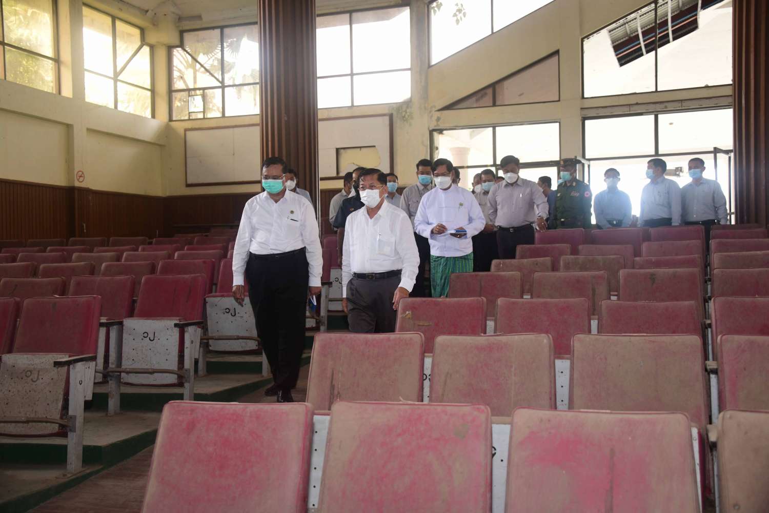 နိုင်ငံတော်စီမံအုပ်ချုပ်ရေးကောင်စီဥက္ကဋ္ဌ၊ နိုင်ငံတော်ဝန်ကြီးချုပ် ဗိုလ်ချုပ်မှူးကြီး မင်းအောင်လှိုင်သည် ယနေ့နံနက်ပိုင်းတွင် ကောင်စီဝင် ဗိုလ်ချုပ်ကြီး တင်အောင်စန်း၊ ကောင်စီတွဲဖက်အတွင်းရေးမှူး ဒုတိယဗိုလ်ချုပ်ကြီး ရဲဝင်းဦး၊ ဆောက်လုပ်ရေးဝန်ကြီးဌာန ပြည်ထောင်စုဝန်ကြီး ဦးရွှေလေး၊ ရန်ကုန်တိုင်းဒေသကြီးဝန်ကြီးချုပ် ဦးစိုးသိန်း၊ ကာကွယ်ရေးဦးစီးချုပ်ရုံးမှ တပ်မတော်အရာရှိကြီးများ၊ ရန်ကုန်တိုင်းစစ်ဌာနချုပ် တိုင်းမှူး ဗိုလ်ချုပ် ညွန့်ဝင်းဆွေ၊ မြို့တော်ဝန် ဦးဘိုဌေး၊ ဒုတိယဝန်ကြီးများနှင့် တာဝန်ရှိသူများ လိုက်ပါ၍ ရန်ကုန်တိုင်းဒေသကြီး၊ လှည်းကူးမြို့နယ်၊ ညောင်နှစ်ပင် ကျေးရွာအနီးရှိ ဖွဲ့စည်းပုံအခြေခံဥပဒေ (၂၀၀၈ ခုနှစ်) ရေးဆွဲရန် အမျိုးသားညီလာခံကျင်းပ ပြုလုပ်ခဲ့သည့် ပြည်ထောင်စုခန်းမကြီးသို့ သွားရောက်ကြည့်ရှု စစ်ဆေးသည်။