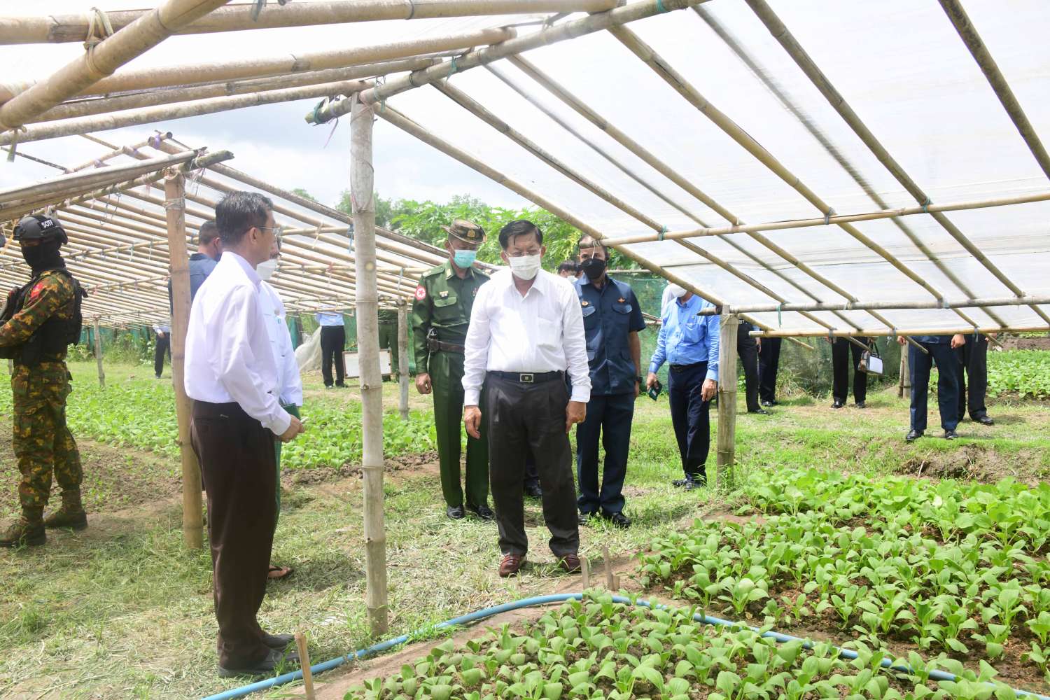 ယင်းနောက် နိုင်ငံတော်စီမံအုပ်ချုပ်ရေးကောင်စီဥက္ကဋ္ဌ နိုင်ငံတော်ဝန်ကြီးချုပ်နှင့် အဖွဲ့ဝင်များသည် စိုက်ပျိုးမွေးမြူရေးဇုန်အတွင်း လှည့်လည်၍ စိုက်ပျိုးရေးဦးစီးဌာနနှင့် စိမ်းလန်းသမဝါယမအဖွဲ့တို့ ပူးပေါင်းဆောင်ရွက်သည့် ဓာတုကင်းလွတ် ဟင်းသီးဟင်းရွက်စိုက်ခင်းနှင့် CJ Feed Myanmar ကြက်မွေးမြူရေးလုပ်ငန်းတို့၏ လုပ်ငန်းဆောင်ရွက်နေမှု အခြေအနေများကို လိုက်လံကြည့်ရှုစစ်ဆေးရာ လုပ်ငန်းအလိုက် တာဝန်ရှိသူများက ရှင်းလင်းတင်ပြခဲ့ကြောင်းနှင့် နိုင်ငံတော်စီမံအုပ်ချုပ်ရေးကောင်စီဥက္ကဋ္ဌ နိုင်ငံတော်ဝန်ကြီးချုပ်က သိရှိလိုသည်များအား ပြန်လည်မေးမြန်းဆွေးနွေးခဲ့ကြောင်း သတင်းရရှိသည်။