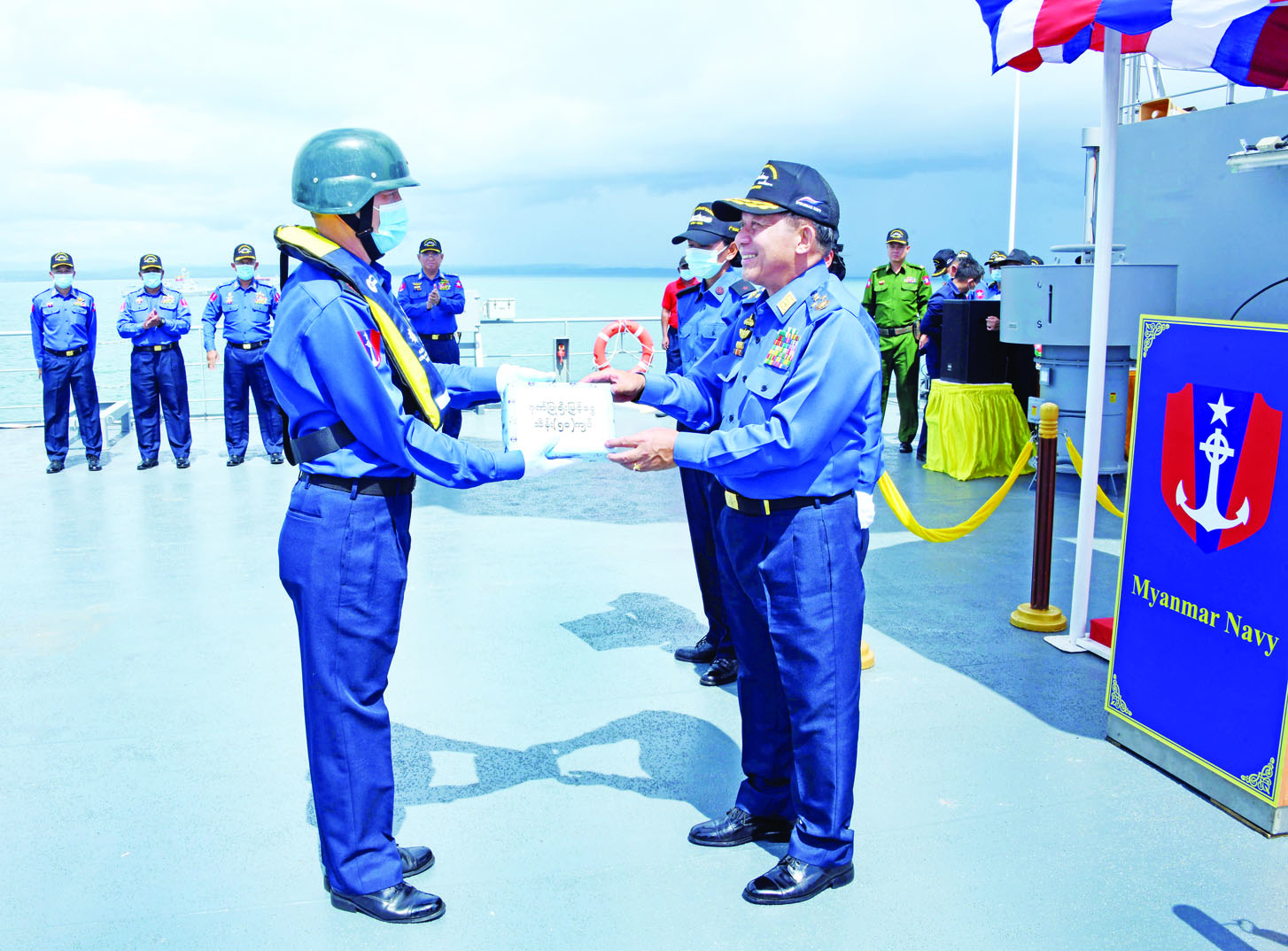ယင်းနောက် နိုင်ငံတော်စီမံအုပ်ချုပ်ရေးကောင်စီဥက္ကဌ၊ တပ်မတော်ကာကွယ်ရေးဦးစီးချုပ် ဗိုလ်ချုပ်မှူးကြီးမင်းအောင်လှိုင်မှ လေ့ကျင့်ခန်းတွင်ပါဝင်သည့် အရာရှိ၊ စစ်သည်များအား အမှာစကားပြောကြားရာ တိုက်ခိုက်ရေး ရေငုပ်သင်္ဘောစစ်ရေယာဉ်(မင်းရဲသိင်္ခသူ)၊ တိုက်ခိုက်ရေးရေငုပ်သင်္ဘောစစ်ရေယာဉ် (မင်းရဲကျော်ထင်)နှင့် စစ်ရေယာဉ်များမှ အရာရှိ၊ စစ်သည်များသည် စစ်ရေယာဉ် (မုတ္တမ) ပေါ်၌ တက်ရောက်မိန့်ခွန်းနာခံခဲ့သည်။