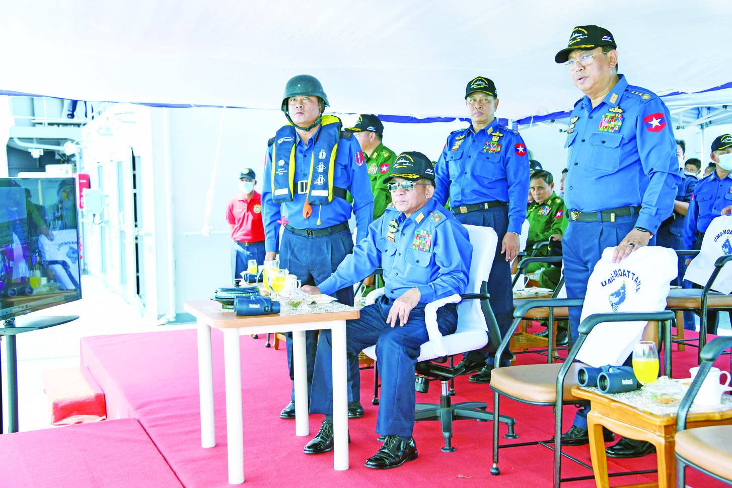 ထိုသို့ ရေငုပ်သင်္ဘောရန် ကာကွယ်မှုစစ်ဆင်ရေးနှင့် ရေငုပ်သင်္ဘောစစ်ဆင်ရေးများ လေ့ကျင့်ဆောင်ရွက်ပြီး ရေပေါ်ရေအောက် ရန်သူ့ပစ်မှတ်များအား Torpedo များဖြင့်လည်းကောင်း၊ ရေတပ်အမြောက်ကြီးများဖြင့်လည်းကောင်း၊ စက်သေနတ်ကြီးများဖြင့်လည်းကောင်း လက်တွေ့ လေ့ကျင့်ပစ်ခတ်မှုများအား နိုင်ငံတော်စီမံအုပ်ချုပ်ရေးကောင်စီဥက္ကဋ္ဌ တပ်မတော်ကာကွယ်ရေးဦးစီးချုပ်က စစ်ရေယာဉ် (မုတ္တမ)ပေါ်မှ ကြည့်ရှုစစ်ဆေးသည်။