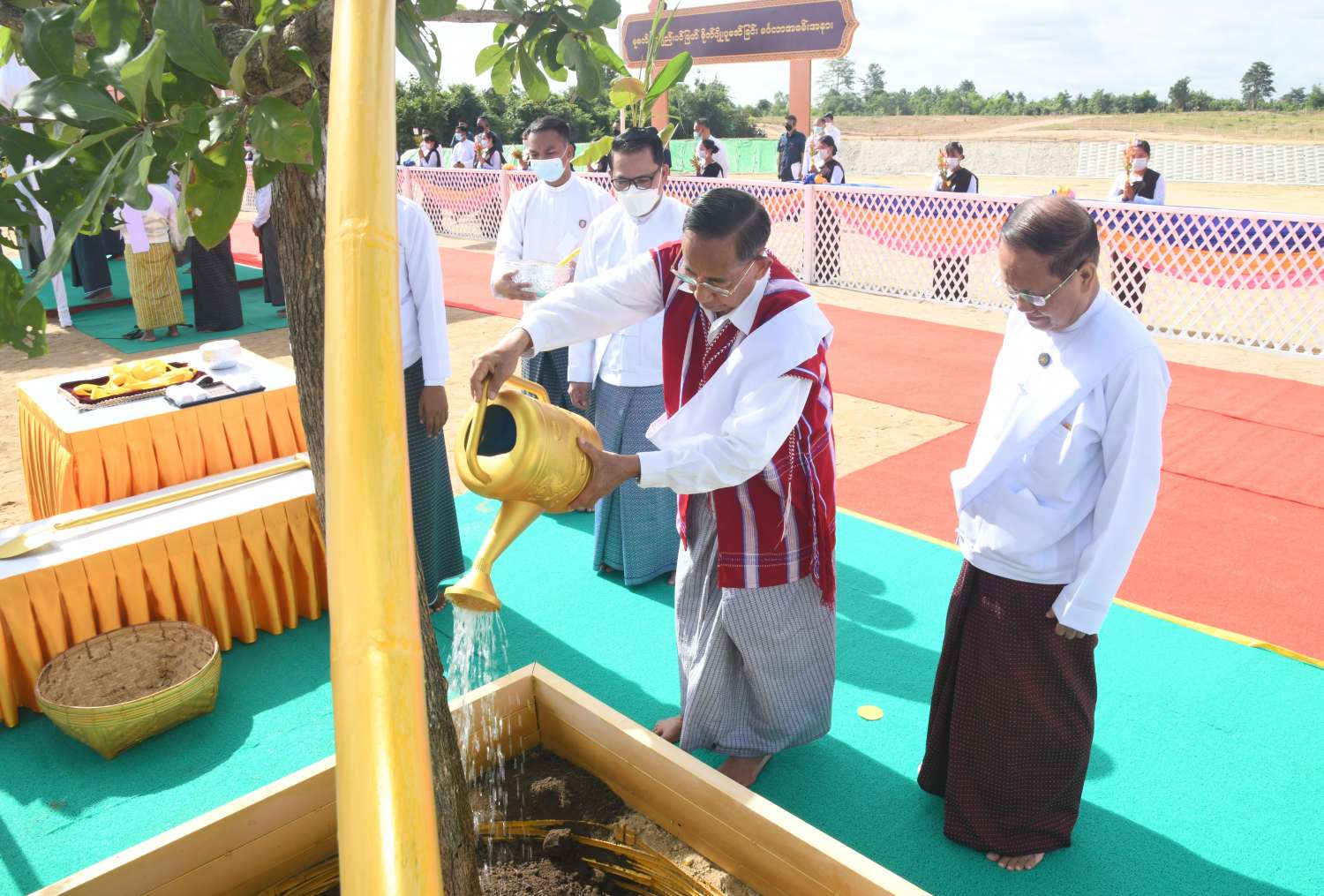 ဆဋ္ဌသင်္ဂါယနာတင်ပွဲအခမ်းအနား ပြုလုပ်ခဲ့သည့် ရန်ကုန်တိုင်းဒေသကြီး၊ သီရိမင်္ဂလာကမ္ဘာအေးကုန်းမြေရှိ ဆဋ္ဌသင်္ဂါယနာတင် မဟာပါသာဏ လိုဏ်ဂူသိမ်တော်ကြီး ကဲ့သို့သော သာသနာရေးဆိုင်ရာ အခမ်းအနားကြီးများ ကျင်းပပြုလုပ်နိုင်သည့် သာသနာ့ ဗိမာန်တော်ကြီးတစ်ခုကိုလည်း ထည့်သွင်းတည်ဆောက်လျက်ရှိပြီး သံဃာအပါး ၁၂၀၀ နှင့် လူပရိတ်သတ်များ ဝင်ဆံ့နိုင်မည်ဖြစ်ကြောင်း၊ မုစလိန္ဒအိုင်ကိုလည်း ဆရာတော်ကြီးများ၏ ဩဝါဒများနှင့်အညီ တည်ဆောက်နေကြောင်း၊ မိမိတို့ နိုင်ငံတော်စီမံအုပ်ချုပ်ရေးကောင်စီ တာဝန်ယူဆောင်ရွက်နေချိန်အတွင်း ဘုရားကြီးတည်ထားကိုးကွယ်မှုကို ပြီးစီးအောင်ရည်မှန်းဆောင်ရွက်နေကြောင်း၊ ဘုရားကြီးတည်ထားကိုးကွယ်မှု အောင်မြင်စွာပြီးစီးရေးအတွက် ကျွမ်းကျင်အင်ဂျင်နီယာများ၊ ခေတ်မီစက်ကိရိယာများဖြင့် နေ့ညမပြတ် ကြိုးပမ်းဆောင်ရွက်လျက်ရှိပြီး ယခုနှစ်ကုန်ပိုင်းတွင် အကြမ်းထည်ပြီးစီးမည်ဟု ခန့်မှန်းထားကြောင်း၊ ဗုဒ္ဓဥယျာဉ်တော်ကြီး တည်ဆောက်ပြီးစီးချိန်တွင် ဂေါပကဆရာတော်ကြီးများ သီတင်းသုံးနေထိုင်နိုင်ရေး ကျောင်းဆောင်တော်များကိုလည်း ထည့်သွင်းတည်ဆောက်သွားမည်ဖြစ်ကြောင်း၊ ထို့ပြင် ပိဋကတ် သုံးပုံကျမ်းစာအုပ်များ နိုင်ငံတကာကျမ်းစာများကဲ့သို့ အဆင့်မီ ပုံနှိပ်ဖြန့်ချိထုတ်ဝေနိုင်ရေးအတွက်လည်း စီမံဆောင်ရွက်လျက်ရှိကြောင်း၊ ကျောက်စာတိုက်များသို့ လာရောက်ကြည်ညိုသူများ လွယ်ကူစွာ ဖက်ရှုလေ့လာနိုင်ရေး ပိဋကတ်ကျမ်းစာများကို Mobile tablet များတွင် ထည့်သွင်းထားရှိပေးသွားမည်ဖြစ်ကြောင်း၊ အဆိုပါ ပိဋကတ်ကျမ်းစာများ ထည့်သွင်းထားသည့် Mobile Tablet များကို ဝယ်ယူပူဇော်လိုပါကလည်း ရောင်းချပေးသွားမည်ဖြစ်ကြောင်းဖြင့် ပြောကြားသည်။