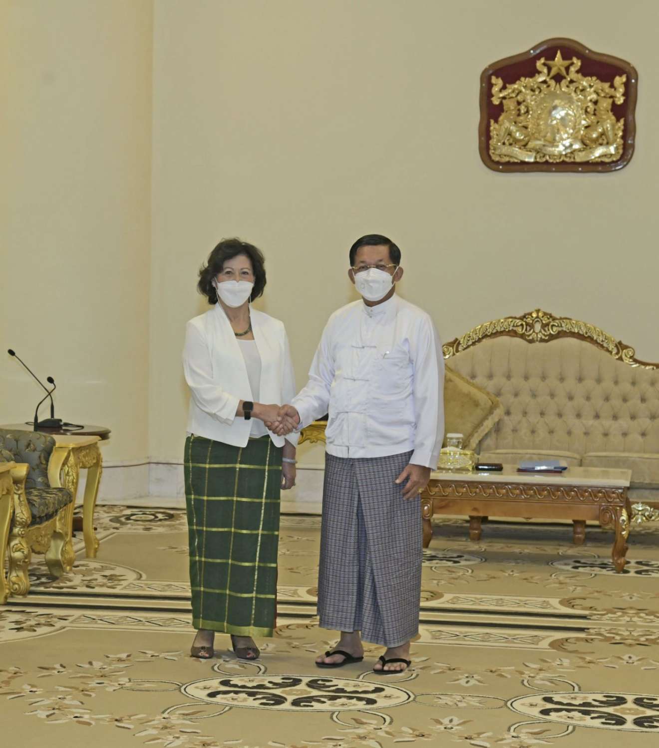 နိုင်ငံ‌တော်စီမံအုပ်ချုပ်ရေးကောင်စီဥက္ကဋ္ဌ နိုင်ငံတော်ဝန်ကြီးချုပ် ဗိုလ်ချုပ်မှူးကြီး မင်းအောင်လှိုင် ကုလသမဂ္ဂအတွင်းရေးမှူးချုပ်၏ မြန်မာနိုင်ငံဆိုင်ရာ အထူးကိုယ်စားလှယ် Ms. Noeleen Heyzer ကို လက်ခံတွေ့ဆုံ