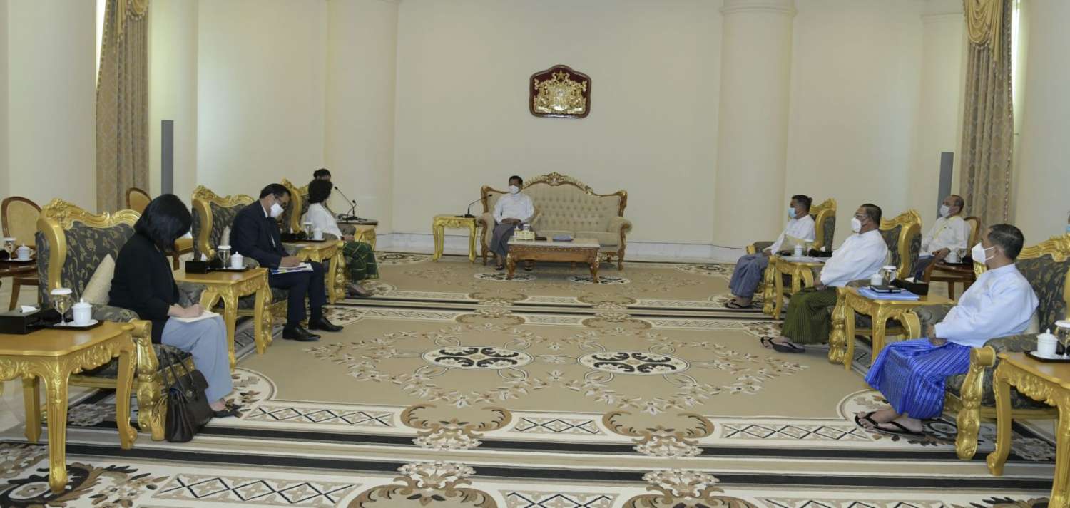 နိုင်ငံတော်စီမံအုပ်ချုပ်ရေးကောင်စီဥက္ကဋ္ဌ နိုင်ငံတော်ဝန်ကြီးချုပ် ဗိုလ်ချုပ်မှူးကြီး မင်းအောင်လှိုင်သည် ကုလသမဂ္ဂအတွင်းရေးမှူးချုပ်၏ မြန်မာနိုင်ငံဆိုင်ရာ အထူးကိုယ်စားလှယ် Ms. Noeleen Heyzer ကို ယနေ့မွန်းလွဲပိုင်းတွင် နေပြည်တော်ရှိ နိုင်ငံတော်စီမံအုပ်ချုပ်ရေးကောင်စီ ဥက္ကဋ္ဌရုံး၊ ဧည့်ခန်းမ၌ လက်ခံတွေ့ဆုံသည်။