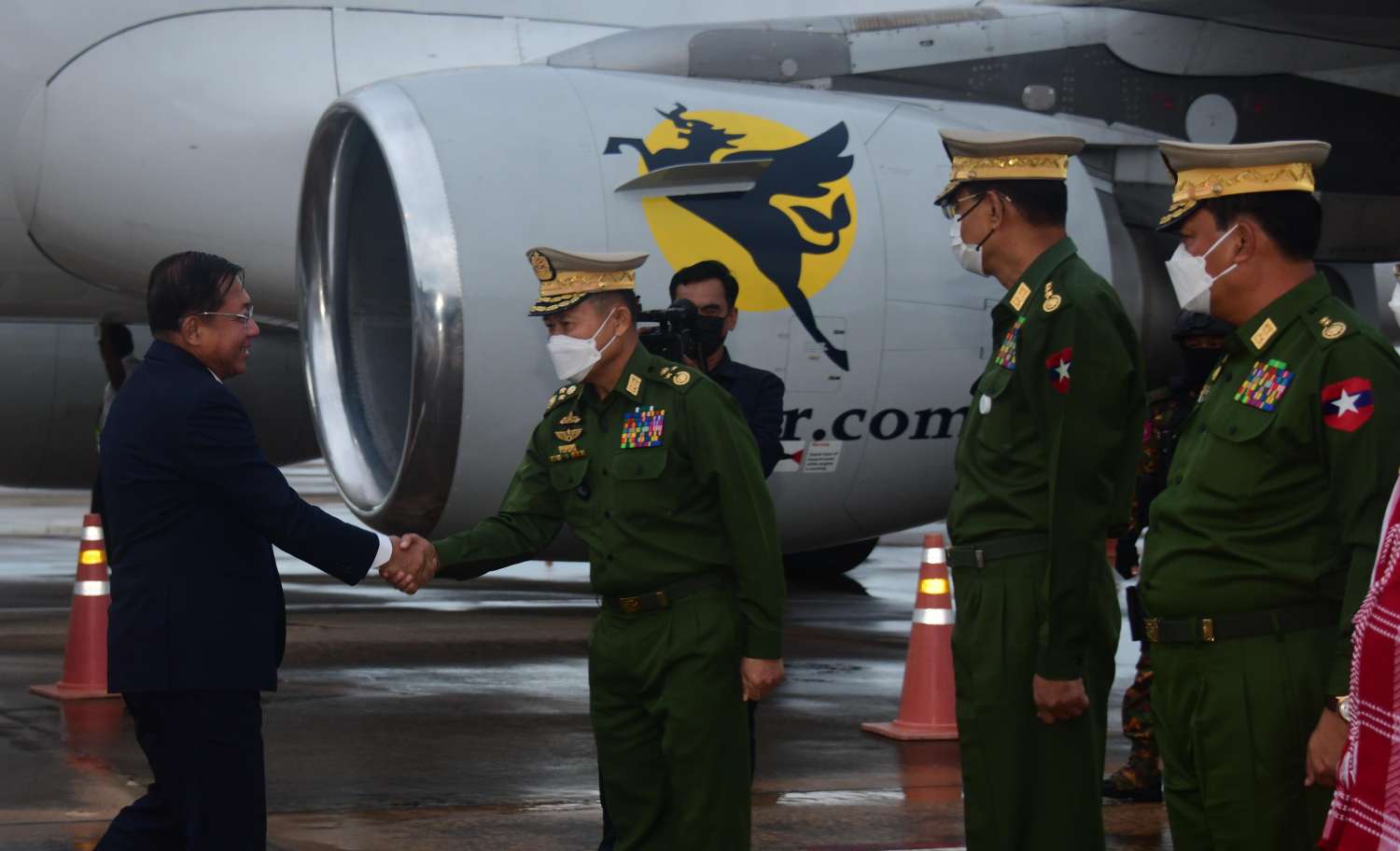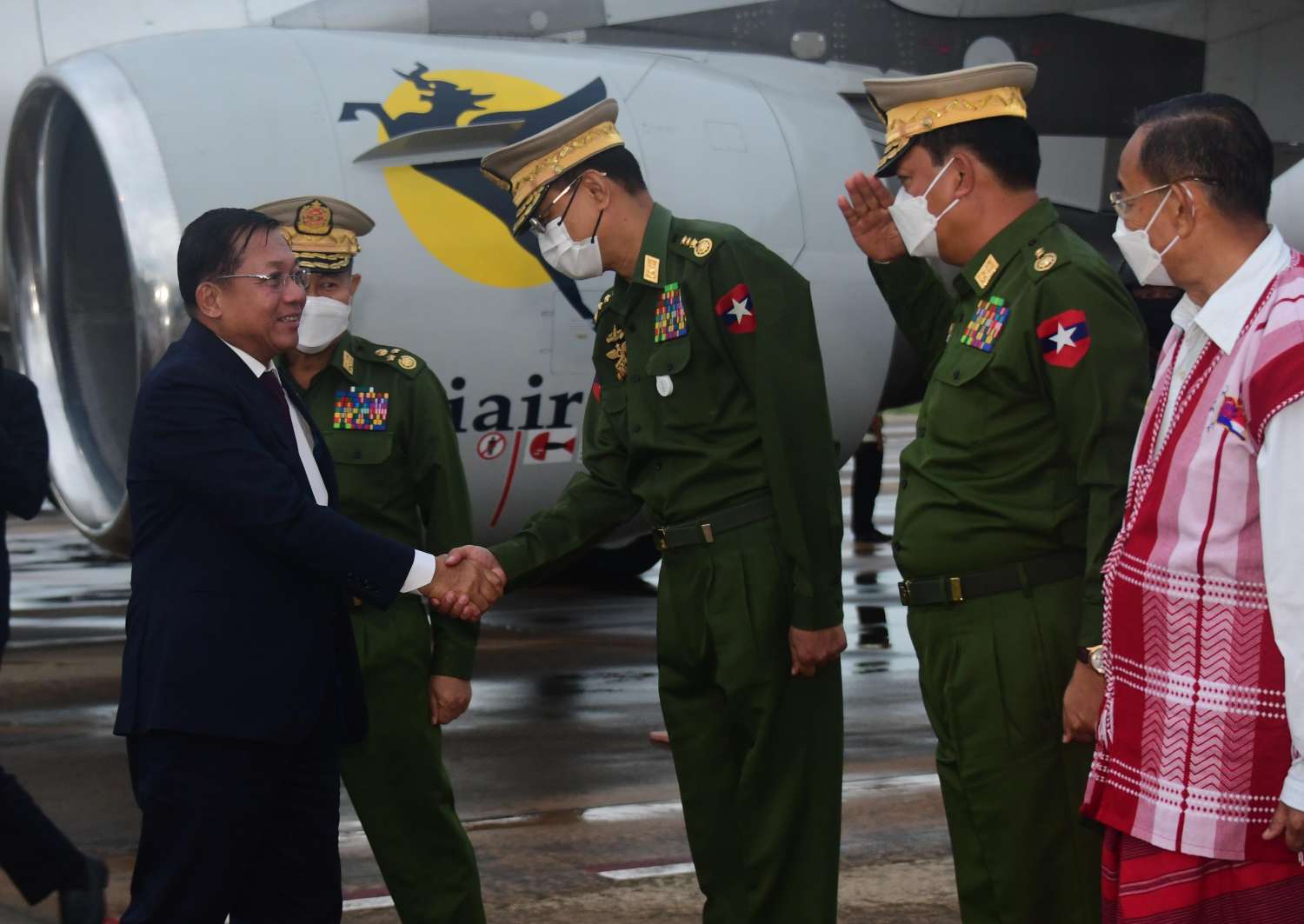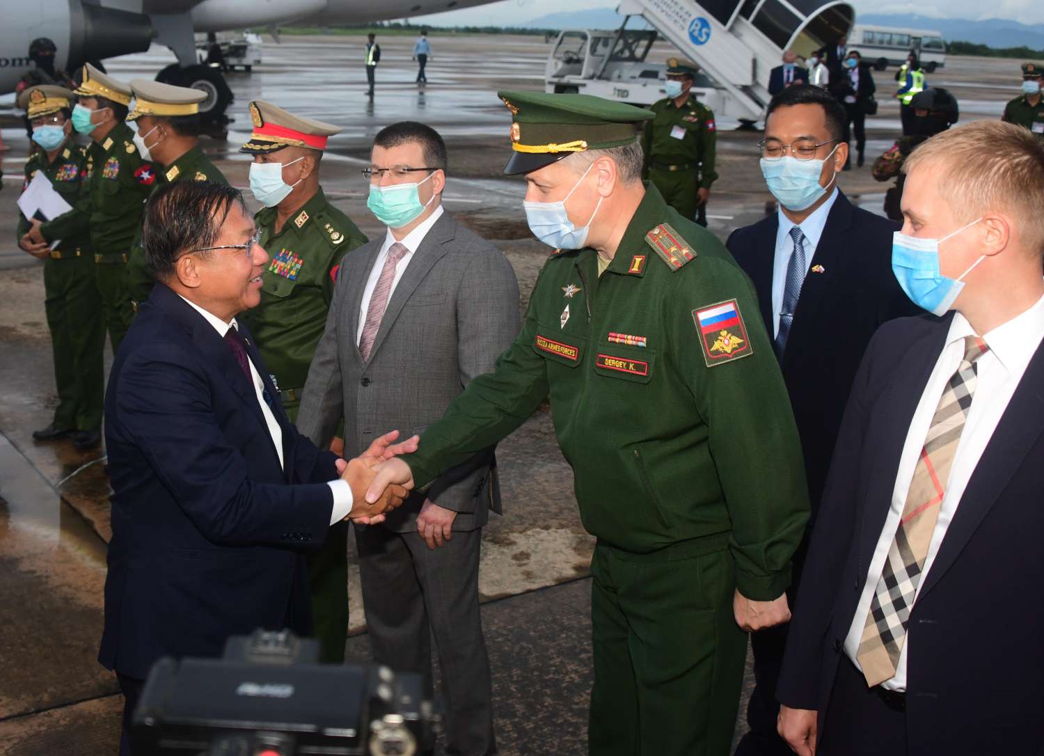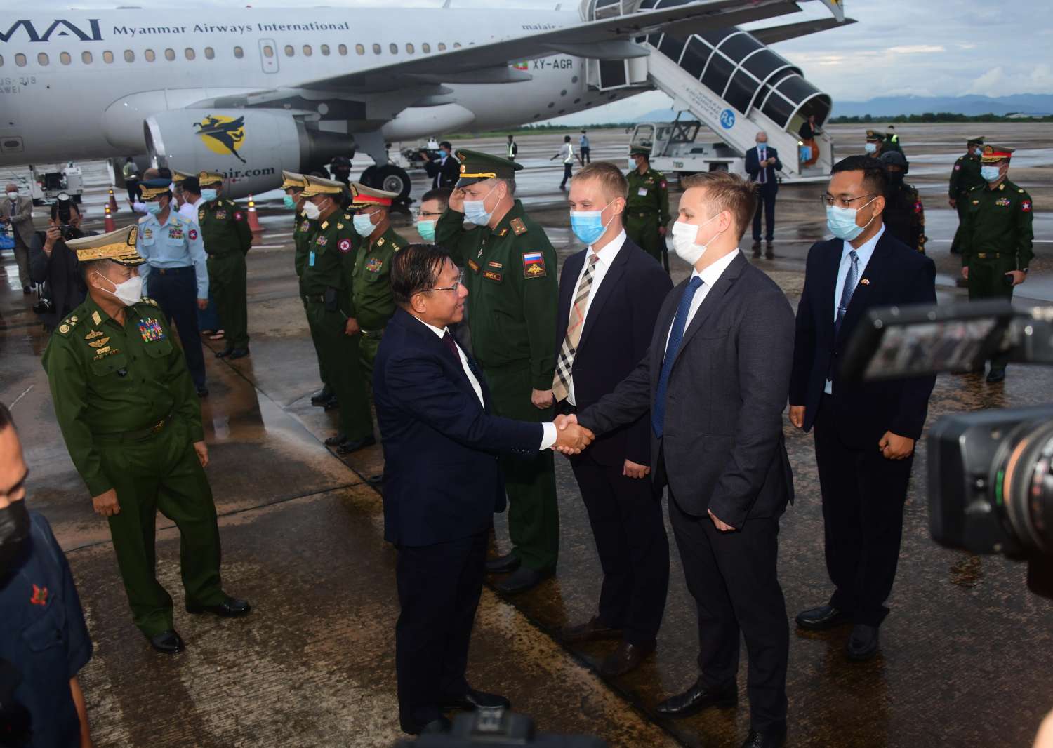 ထို့နောက် နိုင်ငံတော်စီမံအုပ်ချုပ်ရေးကောင်စီဥက္ကဋ္ဌ နိုင်ငံတော်ဝန်ကြီးချုပ် ဦးဆောင်သည့် ကိုယ်စားလှယ်အဖွဲ့သည် မြန်မာစံတော်ချိန် ညနေပိုင်းတွင် နေပြည်တော် တပ်မတော်လေဆိပ်သို့ ပြန်လည်ရောက်ရှိကြရာ ကောင်စီဒုတိယဥက္ကဋ္ဌ၊ ဒုတိယဝန်ကြီးချုပ် ဒုတိယဗိုလ်ချုပ်မှူးကြီး စိုးဝင်း၊ ကောင်စီဝင်များ၊ ကောင်စီအတွင်းရေးမှူး၊ ပြည်ထောင်စုဝန်ကြီးများ၊ ကာကွယ်ရေးဦးစီးချုပ်ရုံး(ကြည်း)မှ တပ်မတော်အရာရှိကြီးများ၊ နေပြည်တော်တိုင်း စစ်ဌာနချုပ်တိုင်းမှူး၊ မြန်မာနိုင်ငံဆိုင်ရာ ရုရှားဖက်ဒရေးရှင်း နိုင်ငံသံရုံးမှ သံရုံးဒုတိယအကြီးအကဲ Mr. Pavel A.KLABUKOV၊ ရုရှားနိုင်ငံဆိုင်ရာ မြန်မာနိုင်ငံစစ်သံမှူး Colonel Sergei KURCHENKO နှင့် တာဝန်ရှိသူများက ကြိုဆို နှုတ်ဆက်ကြသည်။