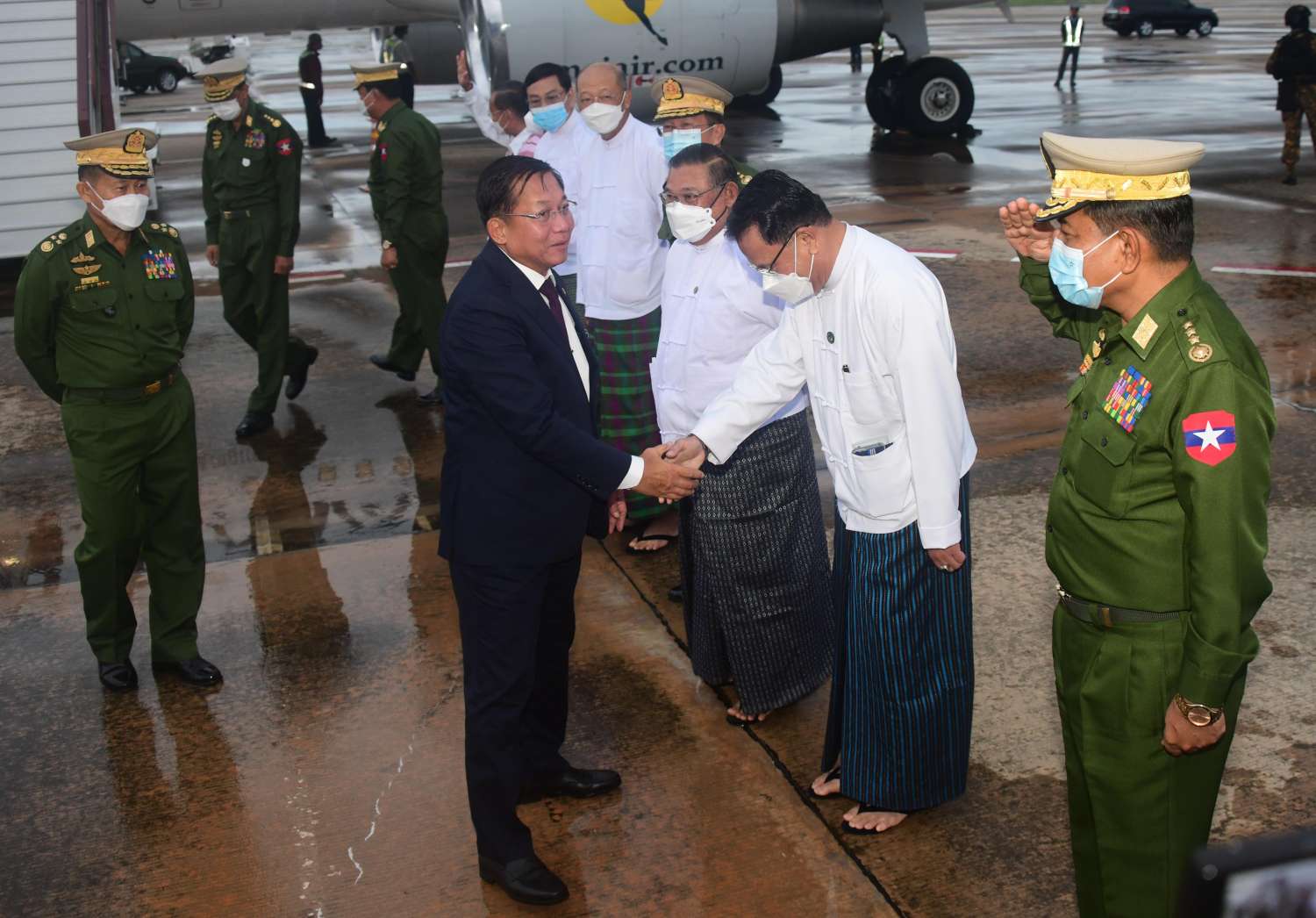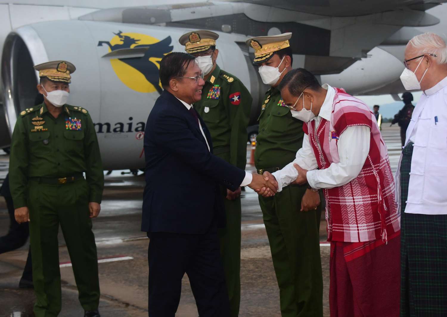 နိုင်ငံတော်စီမံအုပ်ချုပ်ရေးကောင်စီဥက္ကဋ္ဌ နိုင်ငံတော်ဝန်ကြီးချုပ်နှင့်အတူ ကိုယ်စားလှယ် အဖွဲ့ဝင်များအဖြစ် လိုက်ပါသွားကြသည့် ကောင်စီဝင် ဦးမောင်းဟာ၊ ဦးစောဒန်နီယယ်၊ ကောင်စီတွဲဖက်အတွင်းရေးမှူး ဒုတိယဗိုလ်ချုပ်ကြီး ရဲဝင်းဦး၊ စီမံကိန်းနှင့် ဘဏ္ဍာရေးဝန်ကြီးဌာန ပြည်ထောင်စုဝန်ကြီး ဦးဝင်းရှိန်၊ ရင်းနှီးမြှုပ်နှံမှုနှင့် နိုင်ငံခြား စီးပွားဆက်သွယ်ရေးဝန်ကြီးဌာန ပြည်ထောင်စုဝန်ကြီး ဒေါက်တာ ကံဇော်၊ သမဝါယမနှင့် ကျေးလက်ဖွံ့ဖြိုးရေးဝန်ကြီးဌာန ပြည်ထောင်စုဝန်ကြီး ဦးလှမိုး၊ သယံဇာတနှင့် သဘာဝပတ်ဝန်းကျင်ထိန်းသိမ်းရေးဝန်ကြီးဌာန ပြည်ထောင်စုဝန်ကြီး ဦးခင်မောင်ရီ၊ လျှပ်စစ်စွမ်းအားဝန်ကြီးဌာန ပြည်ထောင်စုဝန်ကြီး ဦးသောင်းဟန်၊ ကချင်ပြည်နယ်ဝန်ကြီးချုပ် ဦးခက်ထိန်နန်၊ ကာကွယ်ရေးဦးစီးချုပ်ရုံး(ကြည်း)မှ တပ်မတော် အရာရှိကြီးများ၊ နိုင်ငံခြားရေးဝန်ကြီးဌာနနှင့် ပြန်ကြားရေးဝန်ကြီးဌာနတို့မှ ဒုတိယဝန်ကြီးများ၊ စစ်ဘက်၊ နယ်ဘက်မှ တာဝန်ရှိသူများ ပြန်လည်လိုက်ပါလာခဲ့ကြသည်။