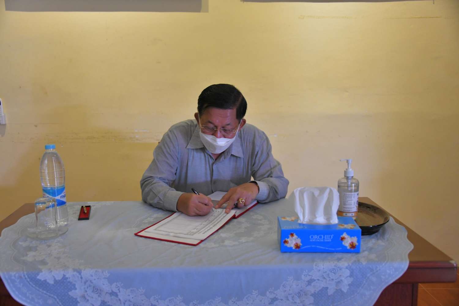 ယင်းနောက် နိုင်ငံတော်စီမံအုပ်ချုပ်ရေးကောင်စီဥက္ကဋ္ဌ နိုင်ငံတော်ဝန်ကြီးချုပ်သည် သီရိခေတ္တရာပြတိုက် ဧည့်သည်တော်မှတ်တမ်းတွင် လက်မှတ်ရေးထိုးသည်။ ထို့နောက် သရေခေတ္တရာ ယဉ်ကျေးမှုဇုန်အတွင်းရှိ နန်းတော်ရာနေရာသို့ သွားရောက်၍ ထိန်းသိမ်းထားရှိမှုများအား ကြည့်ရှုစစ်ဆေးပြီး နန်းတော်ရာတွင်ရှိနေသည့် ကျုံး ပြန်လည်တူးဖော်ရန် မှာကြားသည်။ ဆက်လက်၍ ရှေးဟောင်းသမိုင်းဝင် ဘောဘောကြီးစေတီသို့ သွားရောက်ဖူးမြော်ကြည်ညိုပြီး ပန်း၊ ရေချမ်း ကပ်လှူပူဇော်သည်။ ယင်းနောက် စေတီတော်ကြီး ဘက်စုံပြုပြင်မွမ်းမံရန် အလှူငွေများ ပေးအပ်လှူဒါန်းခဲ့ပြီး အမှတ်တရ စုပေါင်းဓာတ်ပုံ ရိုက်ကြသည်။