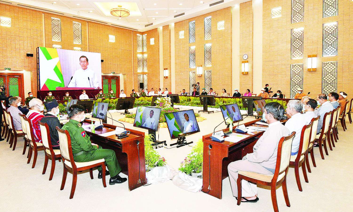 တစ်နိုင်ငံလုံးပစ်ခတ်တိုက်ခိုက်မှု ရပ်စဲရေးသဘောတူ စာချုပ်(NCA)လက်မှတ်ရေးထိုးခြင်း(၇)နှစ်မြောက် နှစ်ပတ်လည်နေ့ တွေ့ဆုံပွဲအခမ်းအနားကို ယနေ့နံနက်ပိုင်းတွင် နေပြည်တော်ရှိ အမျိုးသားစည်းလုံးညီညွတ်ရေးနှင့် ငြိမ်းချမ်းရေးဖော်ဆောင်မှုဗဟိုဌာန၌ ကျင်းပပြုလုပ်ရာ နိုင်ငံတော်စီမံအုပ်ချုပ်ရေးကောင်စီဥက္ကဋ္ဌ နိုင်ငံတော်ဝန်ကြီးချုပ် အမျိုးသားစည်းလုံးညီညွတ်ရေးနှင့် ငြိမ်းချမ်းရေးဖော်ဆောင်မှုဗဟိုကော်မတီဥက္ကဋ္ဌ၊ တပ်မတော်ကာကွယ်ရေးဦးစီးချုပ် ဗိုလ်ချုပ်မှူးကြီး မင်းအောင်လှိုင်က Video Message ပေးပို့၍ မိန့်ခွန်းပြောကြားသည်။