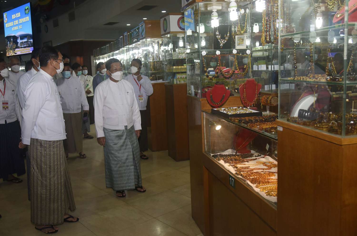 ဦးစွာ နိုင်ငံတော် စီမံအုပ်ချုပ်ရေးကောင်စီ ဥက္ကဋ္ဌ နိုင်ငံတော် ဝန်ကြီးချုပ်နှင့် အခမ်းအနား တက်ရောက်လာကြသူများသည် ရတနာပစ္စည်းများ ထုတ်လုပ်မှု အဆင့်ဆင့်နှင့် ၂၀၂၂ ခုနှစ်၊ နှစ်လယ် မြန်မာ့ကျောက်မျက်ရတနာပြပွဲ အခမ်းအနား ကျင်းပနိုင်ရေး ပြင်ဆင် ဆောင်ရွက်ခဲ့မှု ဗီဒီယိုမှတ်တမ်းအား ကြည့်ရှုကြသည်။