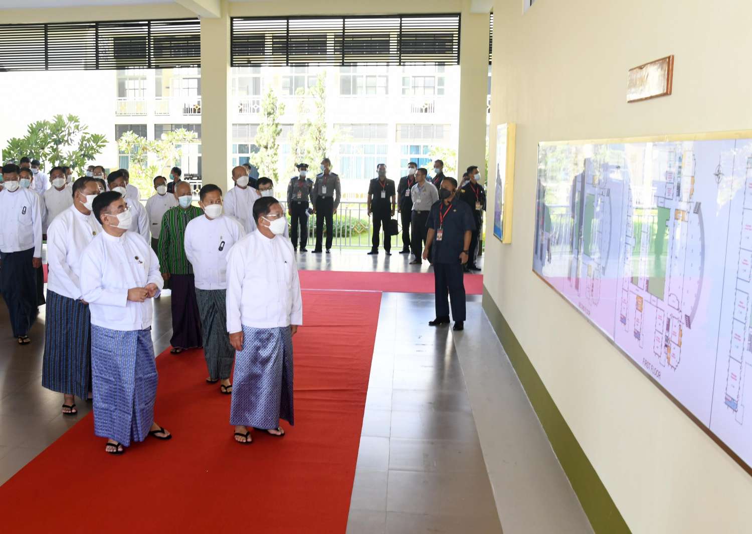 ထို့နောက် နိုင်ငံတော်စီမံအုပ်ချုပ်ရေးကောင်စီဥက္ကဋ္ဌ နိုင်ငံတော်ဝန်ကြီးချုပ်နှင့် အခမ်းအနားတက်ရောက်လာကြသူများသည် Naypyitaw State Academy အတွင်းရှိ လက်တွေ့ခန်း၊ စာသင်ခန်းများ၊ စာကြည့်တိုက်တို့အားလှည့်လည်ကြည့်ရှုကြပြီး Naypyitaw State Academy ပုံစံငယ်အားကြည့်ရှုခဲ့ကြသည်။
