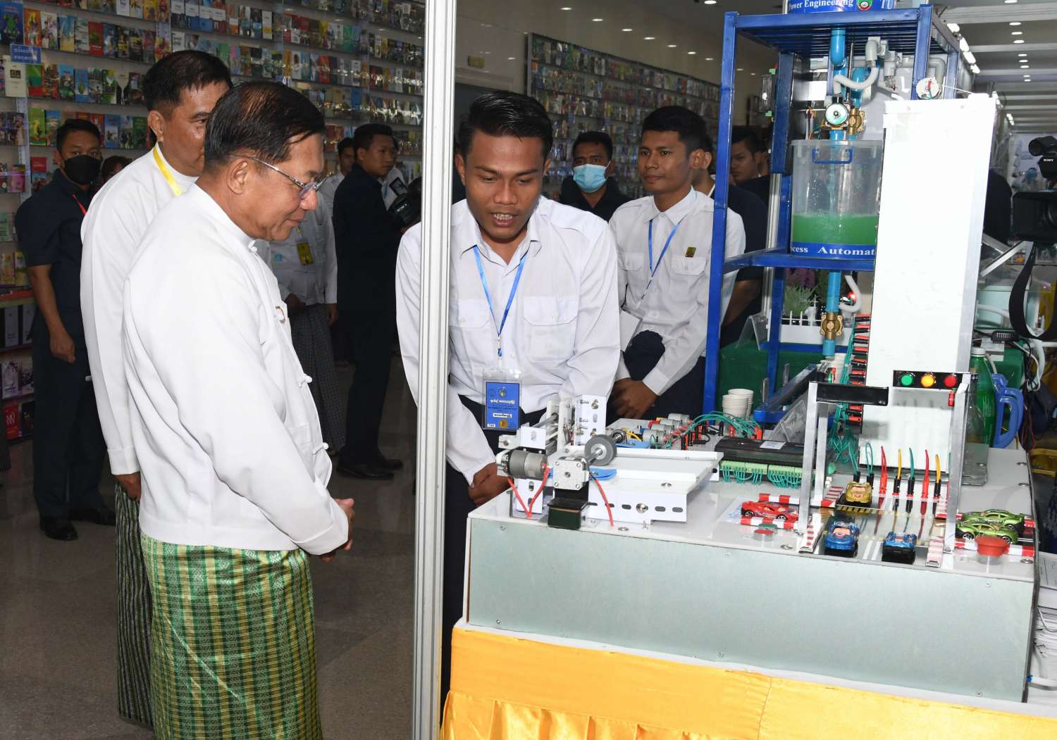 ယင်းနောက် နိုင်ငံတော်စီမံအုပ်ချုပ်ရေးကောင်စီဥက္ကဋ္ဌ နိုင်ငံတော်ဝန်ကြီးချုပ်နှင့် ဇနီးတို့က (၇၅)နှစ်မြောက် စိန်ရတုလွတ်လပ်ရေးနေ့ အထိမ်းအမှတ် လူငယ်နှင့်စာပေ အနုပညာပြပွဲကို စက်ခလုတ်နှိပ် ဖွင့်လှစ်ပေးသည်။
