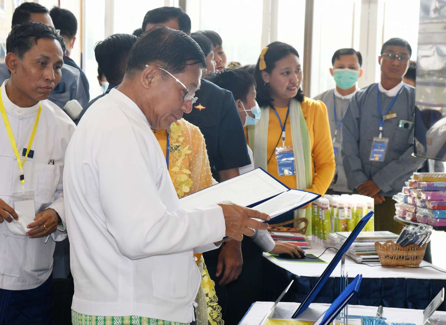 နိုင်ငံတော်စီမံအုပ်ချုပ်ရေးကောင်စီဥက္ကဋ္ဌ နိုင်ငံတော်ဝန်ကြီးချုပ် ဗိုလ်ချုပ်မှူးကြီး မင်းအောင်လှိုင်နှင့်ဇနီး ဒေါ်ကြူကြူလှ (၇၅) နှစ်မြောက် စိန်ရတုလွတ်လပ်ရေးနေ့ အထိမ်းအမှတ်လူငယ်နှင့် စာပေအနုပညာပြပွဲ အခမ်းအနားသို့ တက်ရောက်ဖွင့်လှစ်
