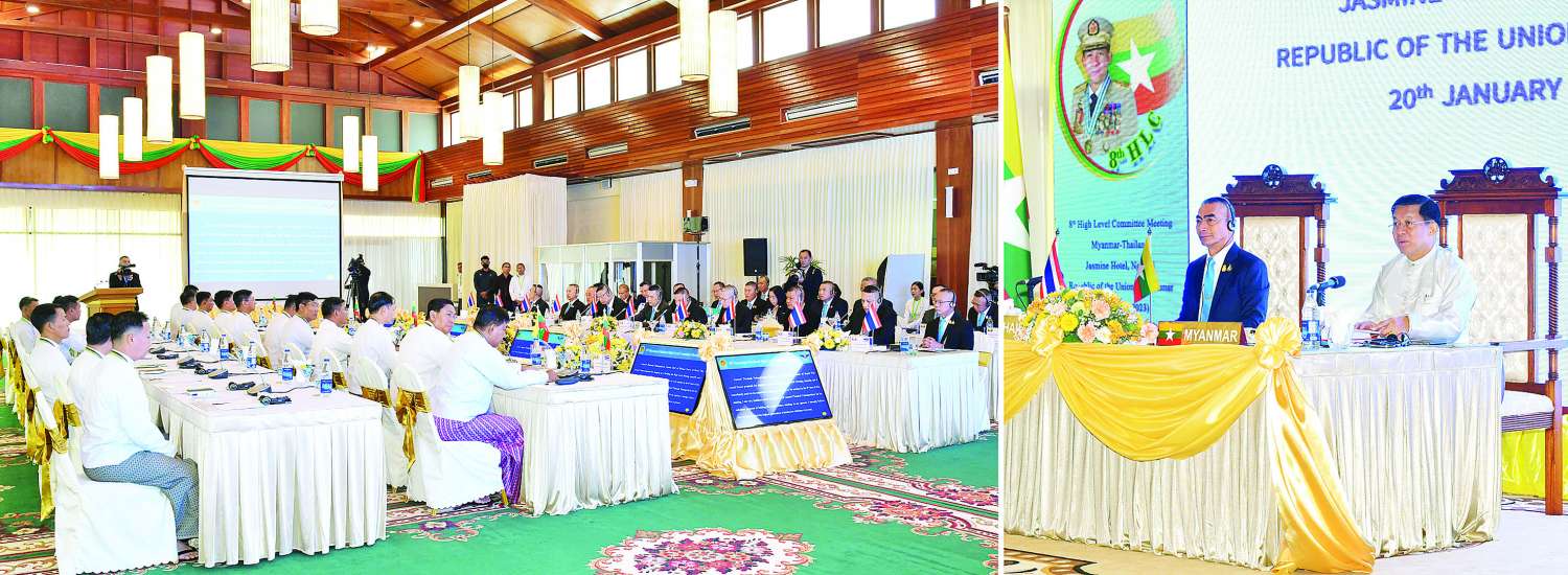 ဦးစွာ (၈)ကြိမ်မြောက် မြန်မာ-ထိုင်း တပ်မတော်နှစ်ရပ်အကြား အဆင့်မြင့်အရာရှိကြီးများအစည်းအဝေး၏ မြန်မာဘက်ပူးတွဲဥက္ကဋ္ဌဖြစ်သူ နိုင်ငံတော်စီမံအုပ်ချုပ်ရေးကောင်စီဥက္ကဋ္ဌ တပ်မတော်ကာကွယ်ရေးဦးစီးချုပ်က အဖွင့်အမှာစကားပြောကြားရာတွင် ယခုကဲ့သို့(၈)ကြိမ်မြောက် မြန်မာ-ထိုင်း တပ်မတော်နှစ်ရပ်အကြား အဆင့်မြင့်အရာရှိကြီးများအစည်းအဝေးကို မြန်မာ့တပ်မတော်မှ အိမ်ရှင်အဖြစ် ကျင်းပပြုလုပ်ခွင့်ရသည့်အတွက် ဝမ်းမြောက်မိပါကြောင်း၊ မိမိတို့နှစ်နိုင်ငံသည် အိမ်နီးချင်း နိုင်ငံများဖြစ်သည်နှင့်အညီခိုင်မာပြီး ချစ်ခင်ရင်းနှီးသည့်ဆက်ဆံရေးကို ရှေးယခင်ကတည်းကပင် တည်ဆောက်ထားပြီးဖြစ်ကြောင်း၊ တပ်မတော်နှစ်ရပ်အကြား ချစ်ကြည်ရင်းနှီးမှုများနှင့်ဆက်ဆံရေးပိုမိုတိုးမြှင့်နိုင်ရန် ရည်ရွယ်ပြီး မြန်မာ-ထိုင်း တပ်မတော်နှစ်ရပ်အကြား အဆင့်မြင့်အရာရှိကြီးများ အစည်းအဝေးများကို ၂၀၁၃ ခုနှစ်မှ စတင်၍ ကျင်းပပြုလုပ်ခဲ့ခြင်းဖြစ်ကြောင်း၊ တပ်မတော်နှစ်ရပ်အကြား နှစ်စဉ်ကျင်းပပြုလုပ်လျက်ရှိသည့် တပ်မတော်နှစ်ရပ်မှအရာရှိကြီးများ အပြန်အလှန်ခရီးစဉ်များ၊ (ကြည်း၊ ရေ၊ လေ) ကဏ္ဍအလိုက်အစည်းအဝေးများ၊ နယ်ခြားကော်မတီအစည်းအဝေးများနှင့် အားကစားပြိုင်ပွဲများအား ၂၀၂၀ ပြည့်နှစ်နှင့် ၂၀၂၁ ခုနှစ်များတွင် ကိုဗစ်ရောဂါဖြစ်ပွားမှုအခြေအနေများကြောင့် ကျင်းပပြုလုပ်နိုင်ခဲ့ခြင်းမရှိခဲ့ဘဲ အချို့သောအစည်းအဝေးများကို Video Conferencing ဖြင့်သာ ကျင်းပပြုလုပ်နိုင်ခဲ့ကြောင်း။