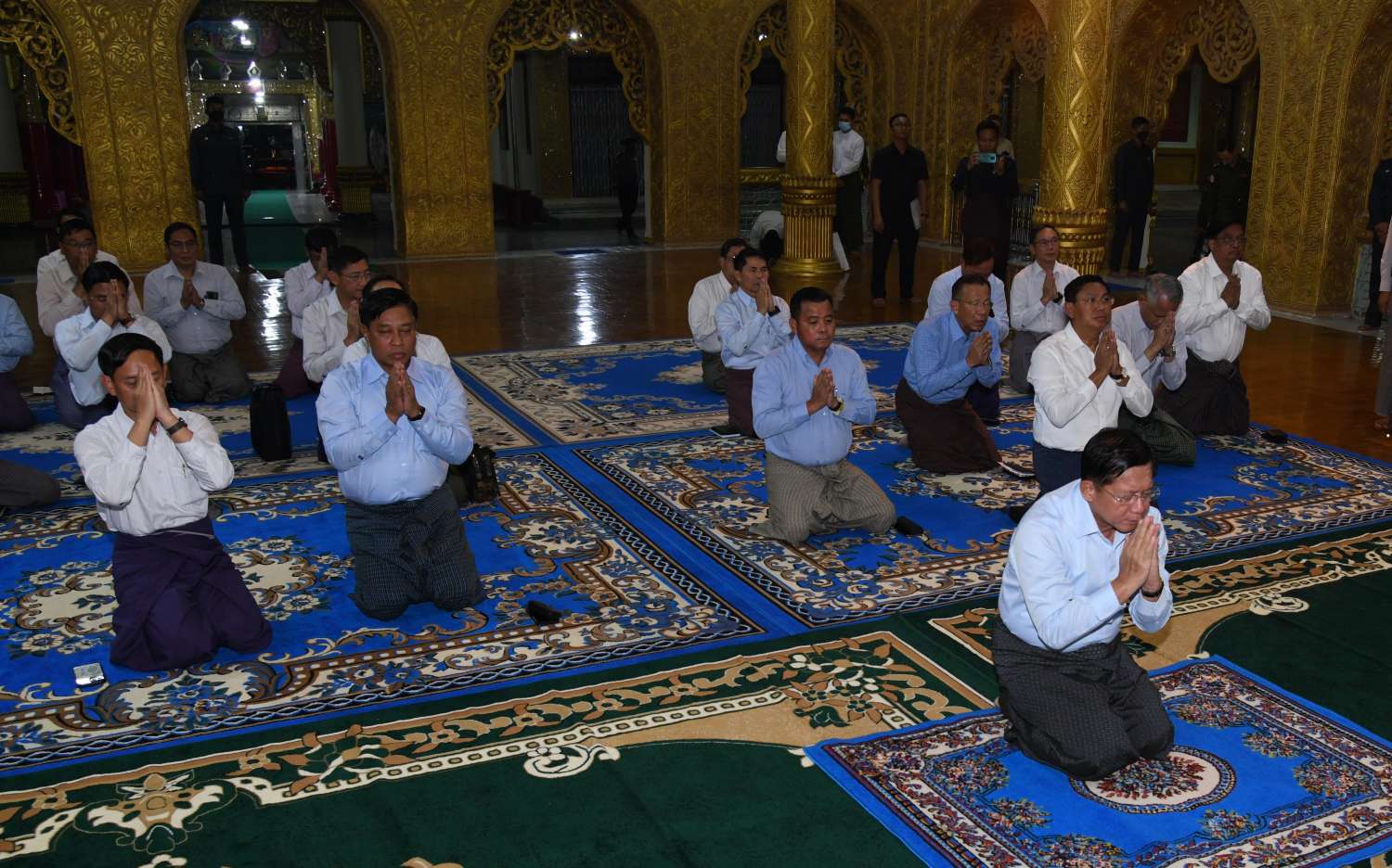 ဦးစွာ နိုင်ငံတော်စီမံအုပ်ချုပ်ရေးကောင်စီဥက္ကဋ္ဌ နိုင်ငံတော်ဝန်ကြီးချုပ်နှင့် အဖွဲ့ဝင်များအား ဂေါပကအဖွဲ့ဝင်များက ကြိုဆိုနှုတ်ဆက်ကြသည်။ ယင်းနောက် နိုင်ငံတော်စီမံအုပ်ချုပ်ရေး ကောင်စီဥက္ကဋ္ဌ နိုင်ငံတော်ဝန်ကြီးချုပ်နှင့် အဖွဲ့ဝင်များသည် စေတီတော်မြတ်ကြီးအား ဖူးမြော်ကြည်ညိုကာ ပန်း၊ ရေချမ်း၊ ဆီမီးများကပ်လှူပူဇော်သည်။