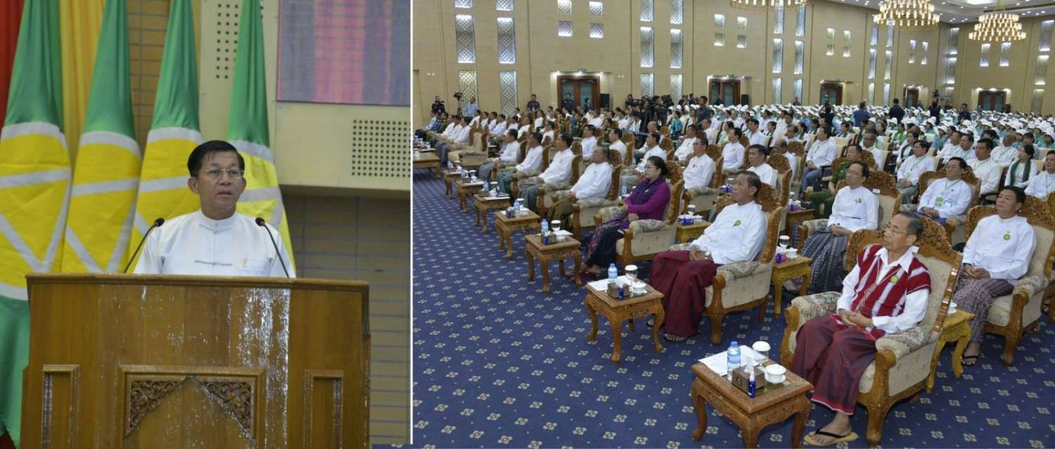 နိုင်ငံတော်စီမံအုပ်ချုပ်ရေးကောင်စီဥက္ကဋ္ဌ နိုင်ငံတော်ဝန်ကြီးချုပ် ဗိုလ်ချုပ်မှူးကြီး မင်းအောင်လှိုင် ၂၀၂၂-၂၀၂၃ ပညာသင်နှစ် လူရည်ချွန်မောင်မယ်များအား တွေ့ဆုံဩဝါဒ စကားမြွက်ကြား