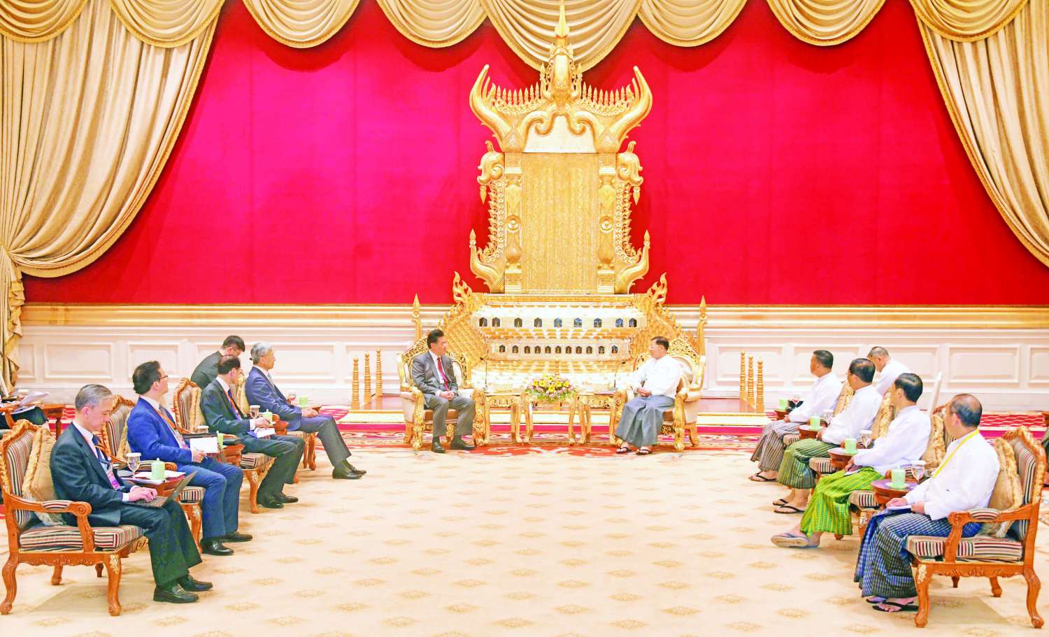နိုင်ငံတော်စီမံအုပ်ချုပ်ရေးကောင်စီဥက္ကဋ္ဌ နိုင်ငံတော်ဝန်ကြီးချုပ် ဗိုလ်ချုပ်မှူးကြီး မင်းအောင်လှိုင် တရုတ်ပြည်သူ့သမ္မတနိုင်ငံ၊ နိုင်ငံတော်ကောင်စီဝင်နှင့် နိုင်ငံခြားရေးဝန်ကြီး H. E. Mr. Qin Gang အား လက်ခံတွေ့ဆုံ